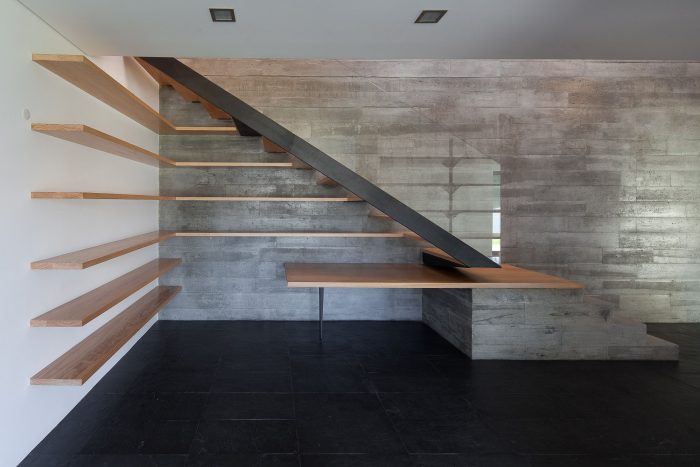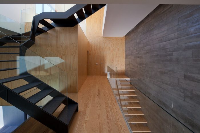 Although the volume, apparently, is being treated as a solid monolith, it is fully traversed, with vertical and horizontal voids, with the purpose of creating strong visual relations with its contiguous exterior spaces, and allowing the light to enter through the entire house.