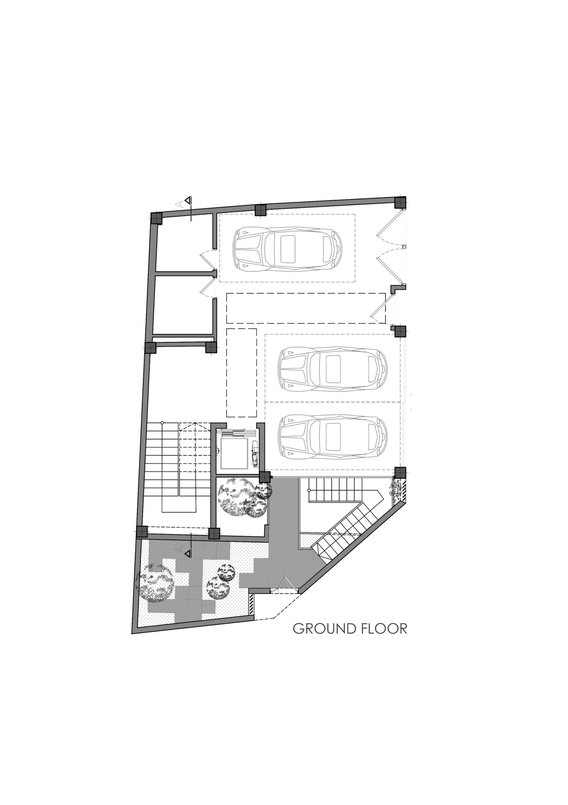 Building Specifics – The total area of the land for House No.3 is 130 square meters and regarding the building rules of the city it can only occupy 80 sqm of the land to build 4 floors on the ground. There was a problem with the northern neighbor that prevented locating the stair box at the northern side of the land and its location was inevitably only possible on the south-west of the building.