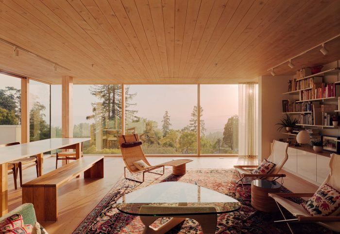 The house requires very little heating and no air-conditioning. Solar panels on the roof create more than enough electricity for the house and an electric car. By weaving the design through the site’s constraints and riches, the design creates a warm home lit by golden light, profoundly connected to its landscape with a net-positive energy footprint.