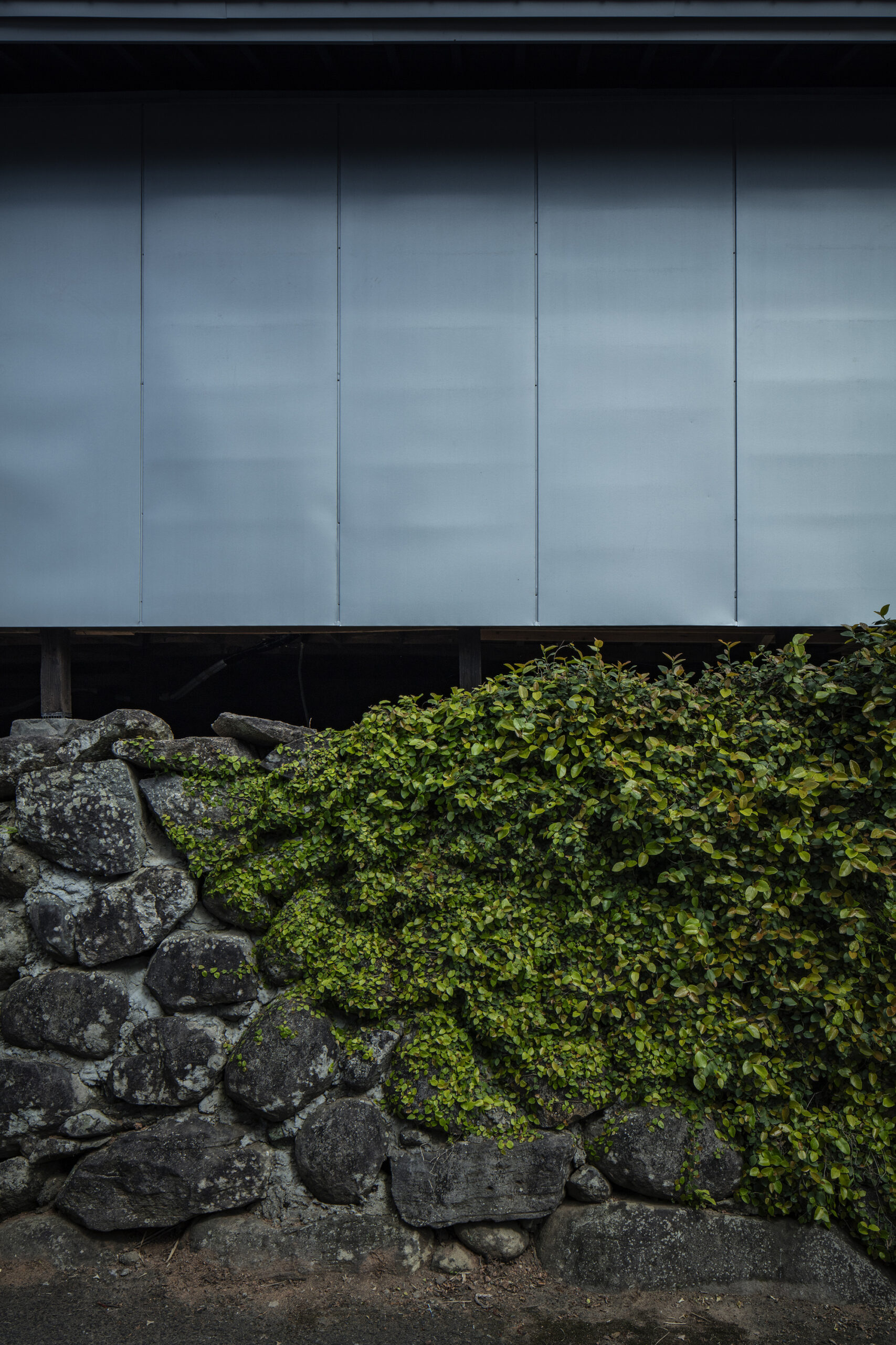 The rugged silver steel fish crates stacked at Akune Fishing Port left a strong impression on us. Drawing inspiration from these crates and the abundance of bluefish, such as horse mackerel and sardines caught in the nearby seas, we envisioned enveloping the old house with silver steel panels. This bold architectural gesture not only protects the building from the harsh coastal climate but also symbolizes a dialogue between preservation and transformation, blending the old with the new.