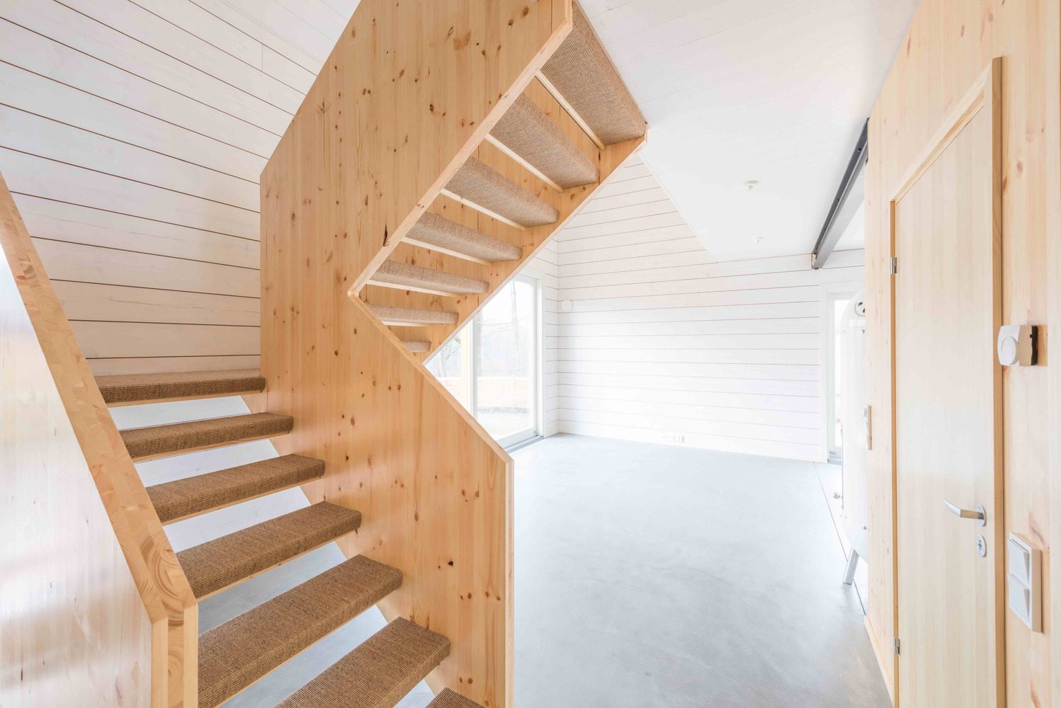 The atmosphere of the interior consists of strong materials; CLT-boards and the surfaces of massive logs bring warmth, a polished concrete floor brings elegance, while brick walls create the feeling of fortitude.