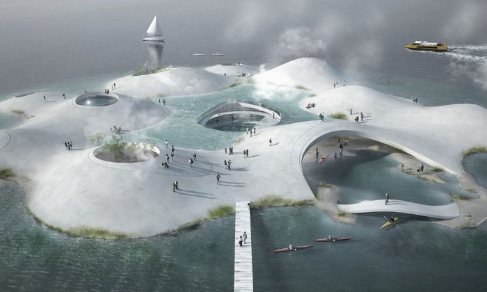 House of Water offers a thousand ways to get wet, and a thousand tales of water in the city. House of Water is a place to meet, a place to explore, and a place to create new knowledge. The house creates an inviting landscape, where the unique Danish understanding of technology is demonstrated to visitors encountering water in various forms. Port of Copenhagen is world renowned for its clean water, so the house’s curved surface provides generous access to the sea. The main freshwater reservoir collects rainwater, which is heated by waste heat, allowing the House of Water to support a year round bathing season. The house’s surface is covered with active limestone that cleans rainwater naturally. Thereby, the house is participating in making Copenhagen a more natural, healthy, and sustainable city.