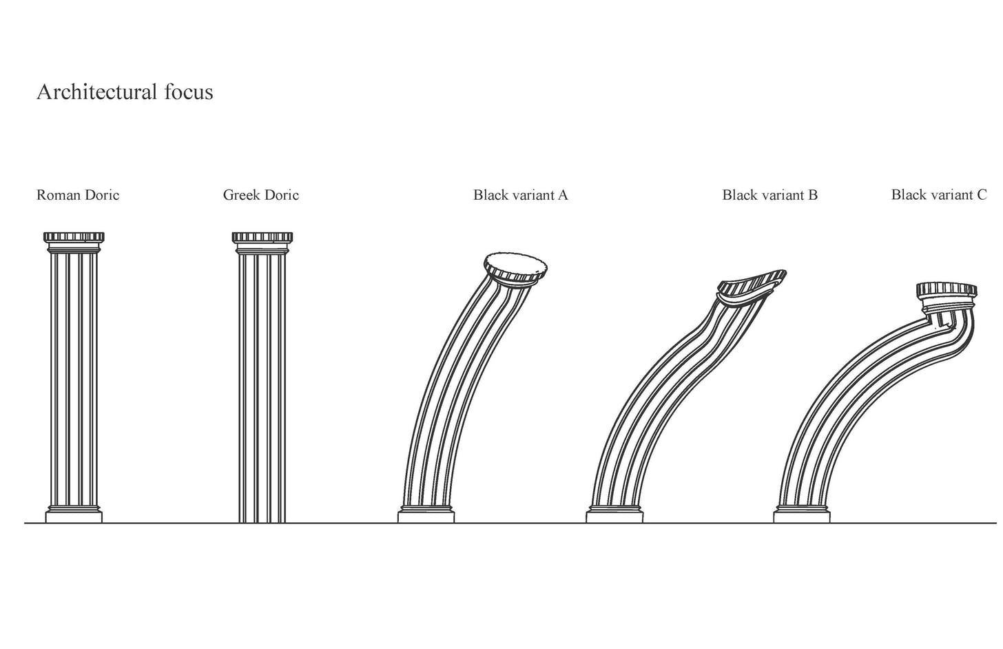 Demar Matthews was inspired by artist Earnie Barnes’ painting titled “Sugar Shack” and wanted to highlight the unique body language of black people. In the painting, the characters “have eccentric and fluid motions about them that make their movements seem elastic”. Besides this, Demar thought of the popular dances designed by African Americans and translated these moves and elasticity into his own interpretation of popular architectural elements.