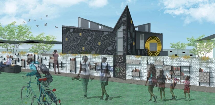 Fascinated by Demar’s thesis, she invited him to realize his building on her property and, more than that, turn the main house and garage into a mixed-use space for other community purposes. Moreover, Demar started his own architectural studio, OffTop Design, to go further through this path of Unearthing Black Aesthetic. His goal is to design nine buildings, including public buildings such as a community center.