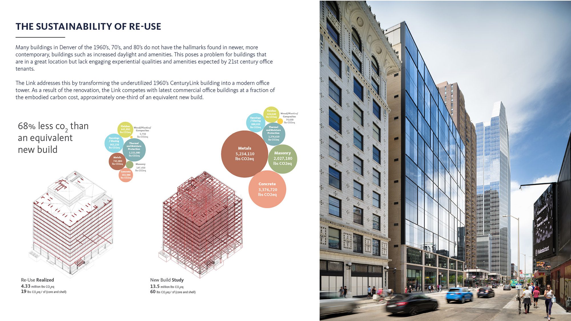 Existing structures contain decades of embodied carbon in their materials. Adaptive reuse preserves this investment while avoiding new material production emissions.