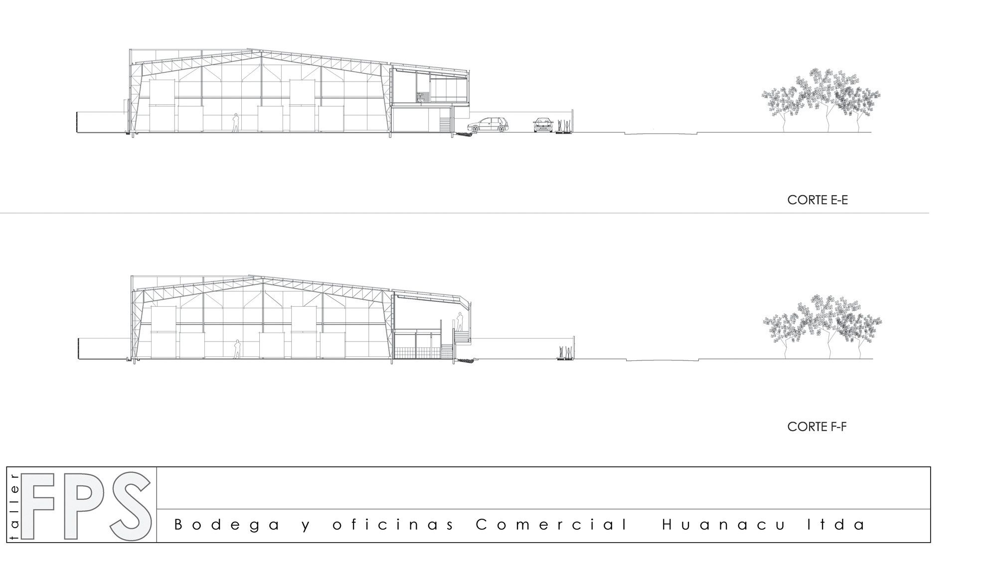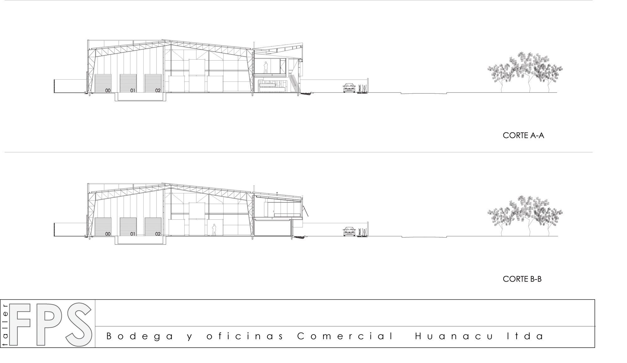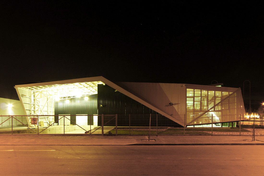 The Huanacu Warehouse & Office, our first project as architects, started in 2006. It sets as the perfect projection of three recently graduated (in fact… graduating) architectural student´s concerns, about the discipline´s approach to the architectural project: One related to the formal exploration, a playfull one that can lead us to a differentiation to historical types of common architecture (typical boring boxes). Another, related to a rigorous technical approach (so the formal exploration can emerge in the reality), and finally a strong commitment, with elemental life situations that define the architecture (formal and technical approaches).