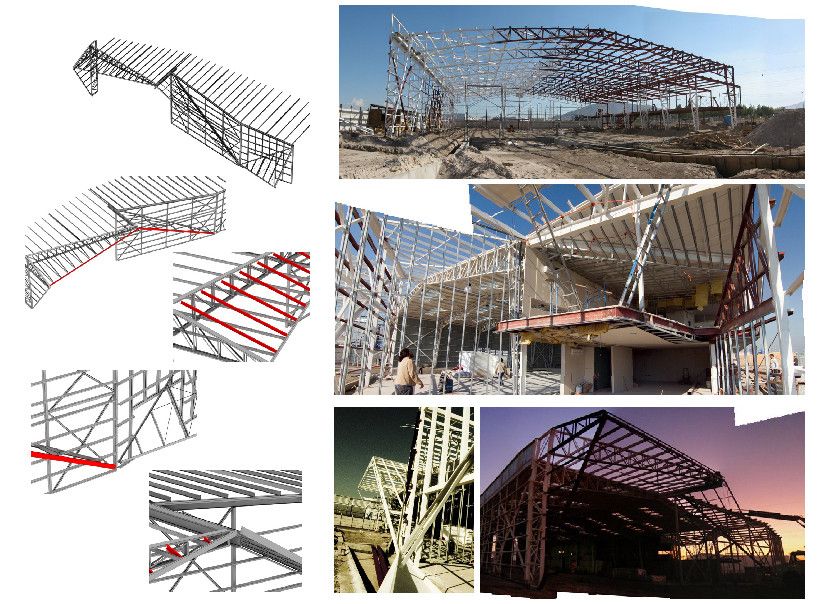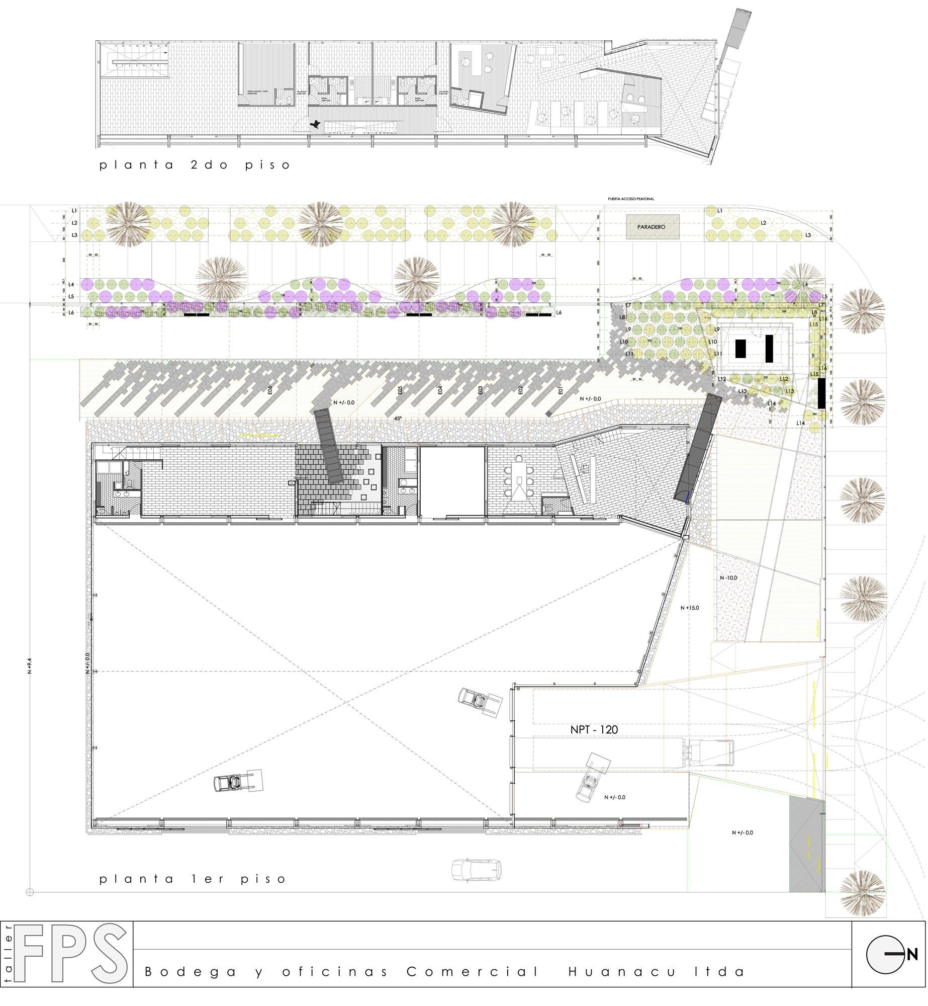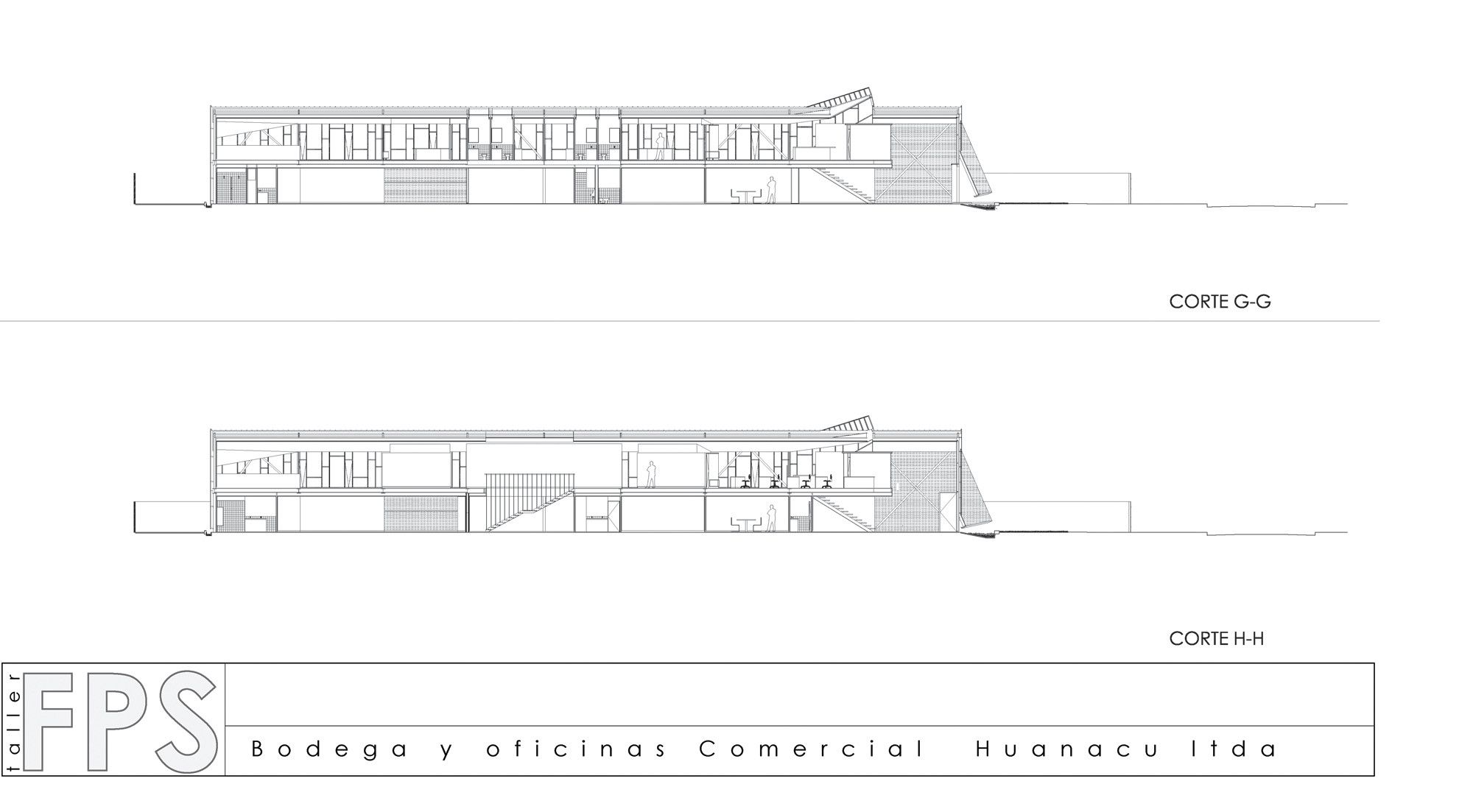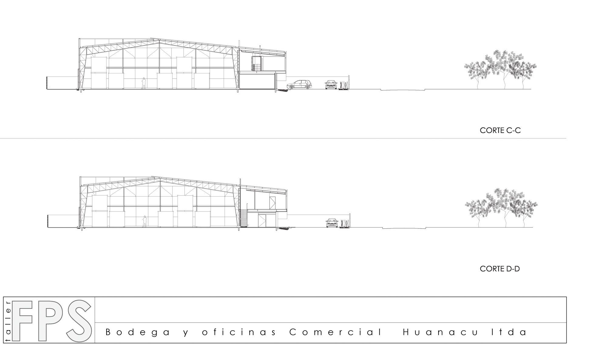 The Huanacu Warehouse & Office, our first project as architects, started in 2006. It sets as the perfect projection of three recently graduated (in fact… graduating) architectural student´s concerns, about the discipline´s approach to the architectural project: One related to the formal exploration, a playfull one that can lead us to a differentiation to historical types of common architecture (typical boring boxes). Another, related to a rigorous technical approach (so the formal exploration can emerge in the reality), and finally a strong commitment, with elemental life situations that define the architecture (formal and technical approaches).