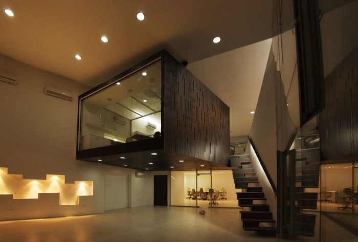 A second folding of the west facade generates the office volume, allowing the views (the main demand of the client) to the future “los maitenes” park (hoping it will be ready in a year or two), separated from the industrial activities and with as much natural light as possible.