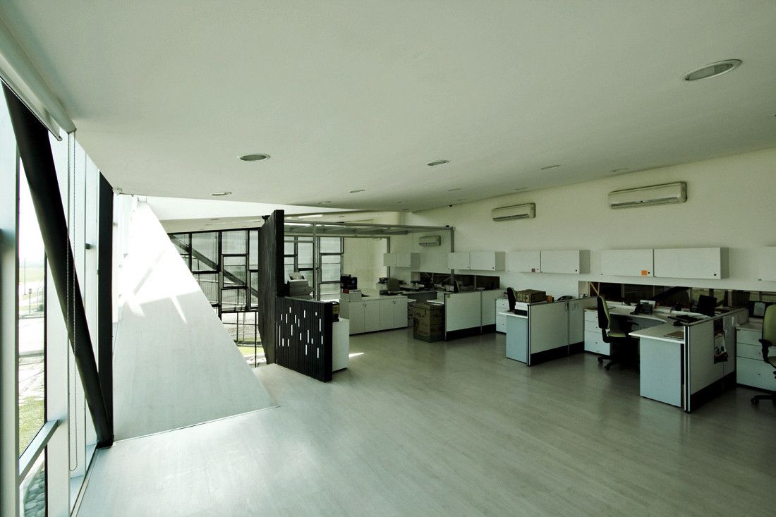 A big warehouse (with administrative offices and showroom), a “cool one”( just as the client request), one that can “stands out” in contrast to the typical industrial architecture of the close context of the project, but… as cheap as we can produce it (aprox $430 USD/sqm). A form that could respond to the internal logics of the company´s operation (charge and discharge of products, exhibition of these products in the showroom, administrative operations, etc).