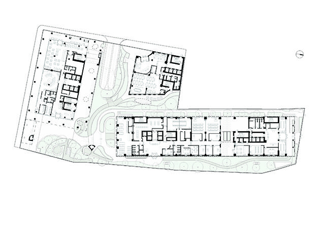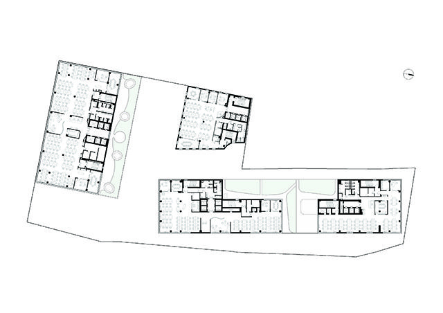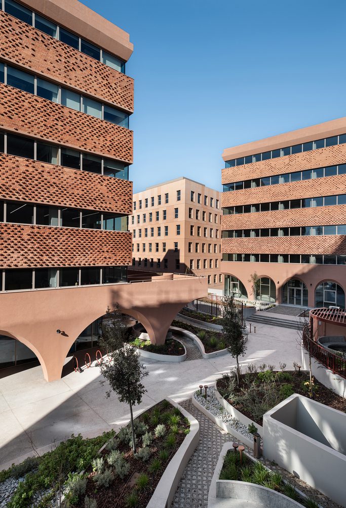 HUB26 aspires to achieve LEED Gold certification, integrating sustainable features such as green roofs and terraces that enhance biodiversity, improve microclimate conditions, and reduce energy consumption. The use of locally sourced materials and energy-efficient systems further minimizes environmental impact. Additionally, a landscaped outdoor area with stepped gardens provides a tranquil gathering space, fostering well-being and social interaction.