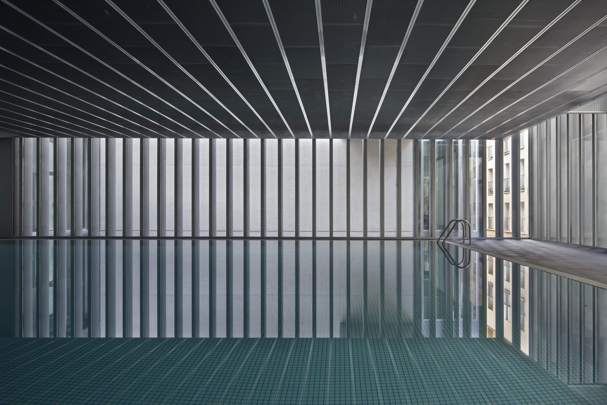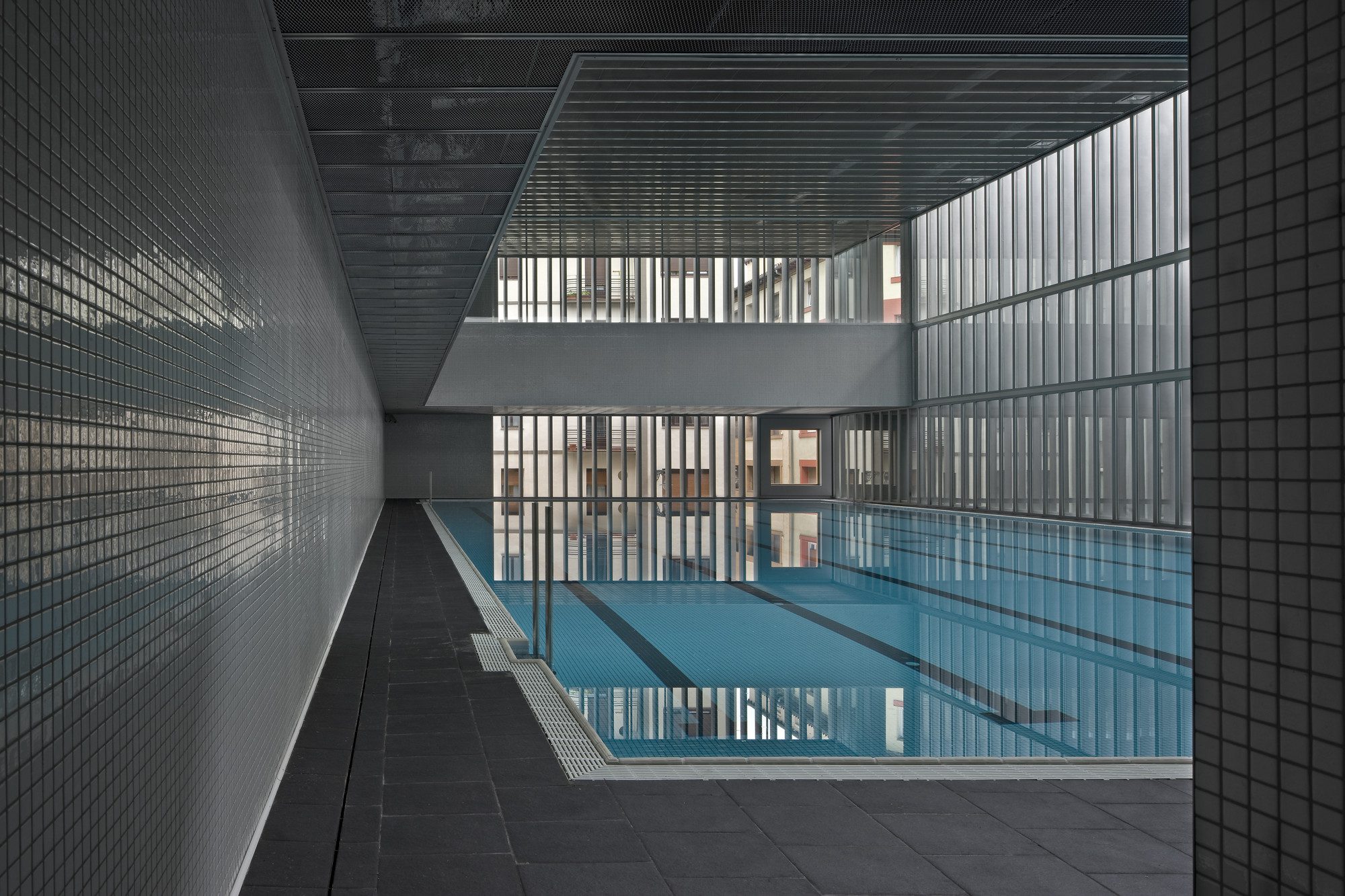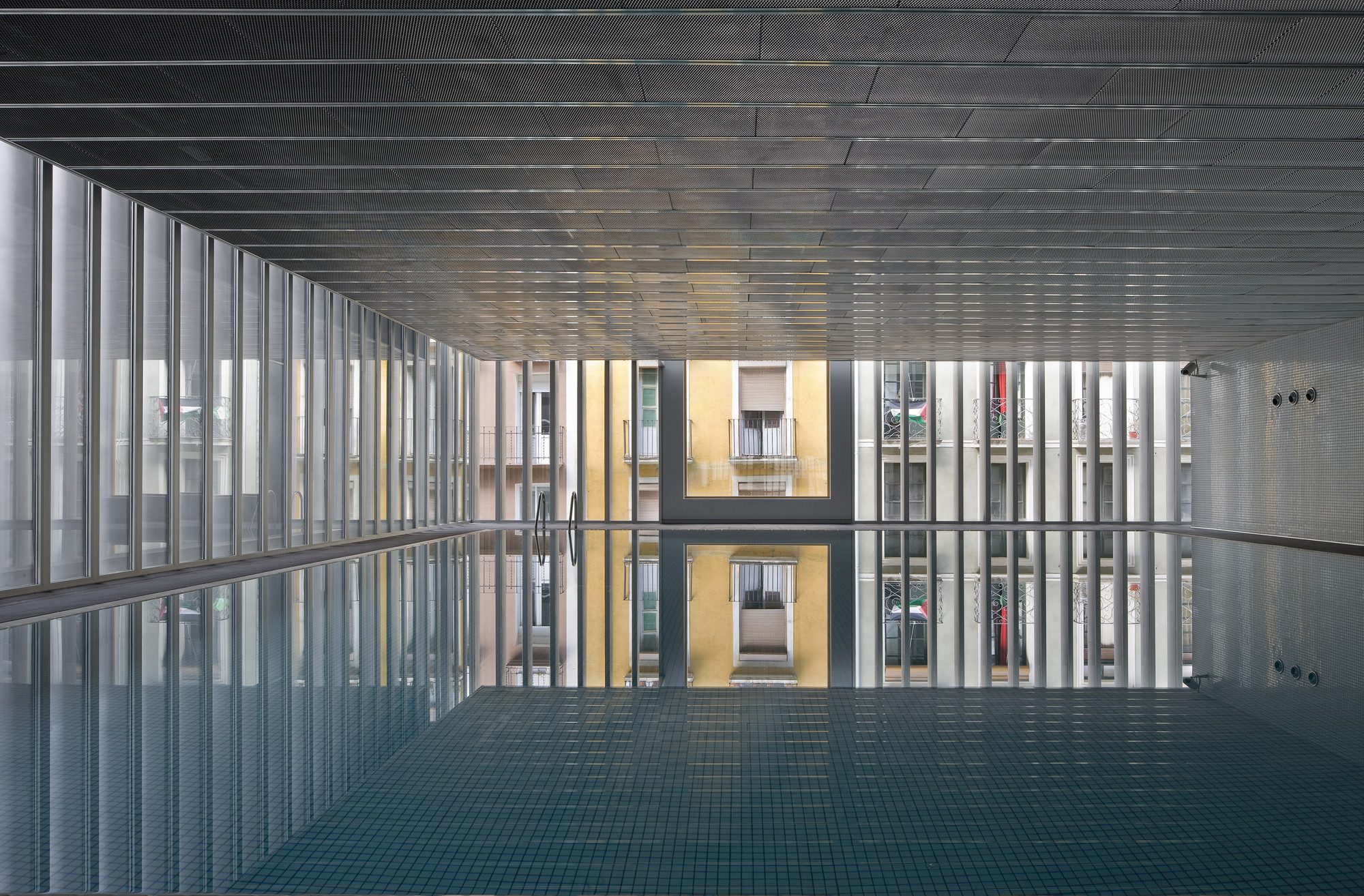 Hydrothermal Center ‘Aquavox’ is located in the old town of Pamplona. It is initiative and municipally owned. And the charge of the project occurs once the team of architects who was awarded the corresponding supports public competition, in January 2005. The site is located on San Agustin street, and had been emptied during the demolition of the old pediment ‘Euskal Jai’, after its acquisition by the Town Hall for the construction of this building. The plot crosses one of the blocks built the Old Town, so it has: two facades opposing parallel streets and two mediator sides, consisting of a straight side wall of the old pediment, and a more irregular one with different volumes that breaks into patios of adjoining buildings. Beyond the general determinations concerning the alignment and flights of the plot, the Special Plan of Protection and Internal Reform of the Old City prescribed for it the introduction of a passage or an inside lane of longitudinal development, perpendicular to both streets. The project obviously follows these guidelines, while it tries to be sensitive to the way in which the construction affects the neighbouring buildings, responding with the opening of patios or possible setbacks to some of the most committed situations arising in the scope of the implantation.
