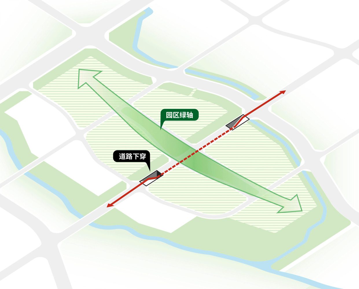 The project site is divided into four sub-parcels by city roads. To bridge the gaps between these parcels and realize the open “park” concept, lead architect Meng Fanhao convinced government authorities to optimize the zoning regulations. This included an overall underpass for the Shawan Road section between the northern and southern parcels, as well as partial underpasses for the main entrance roads, ensuring the park’s integrity and a complete pedestrian system within the campus.