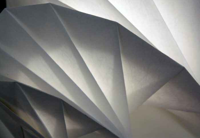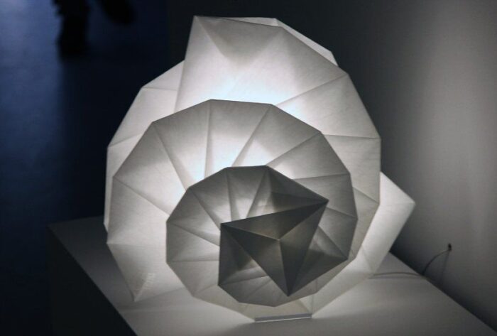 Maybe that’s why Issey Miyake inspired in the shadow and the paper controled light of vernacular japan, to create this new lamps. Beyond the shadow, one can found another japanese ancestral motif Miyake lamps, origami.