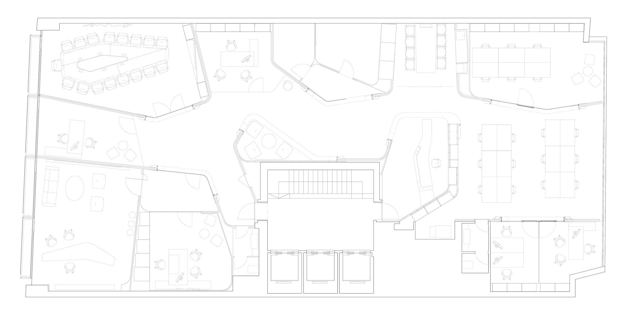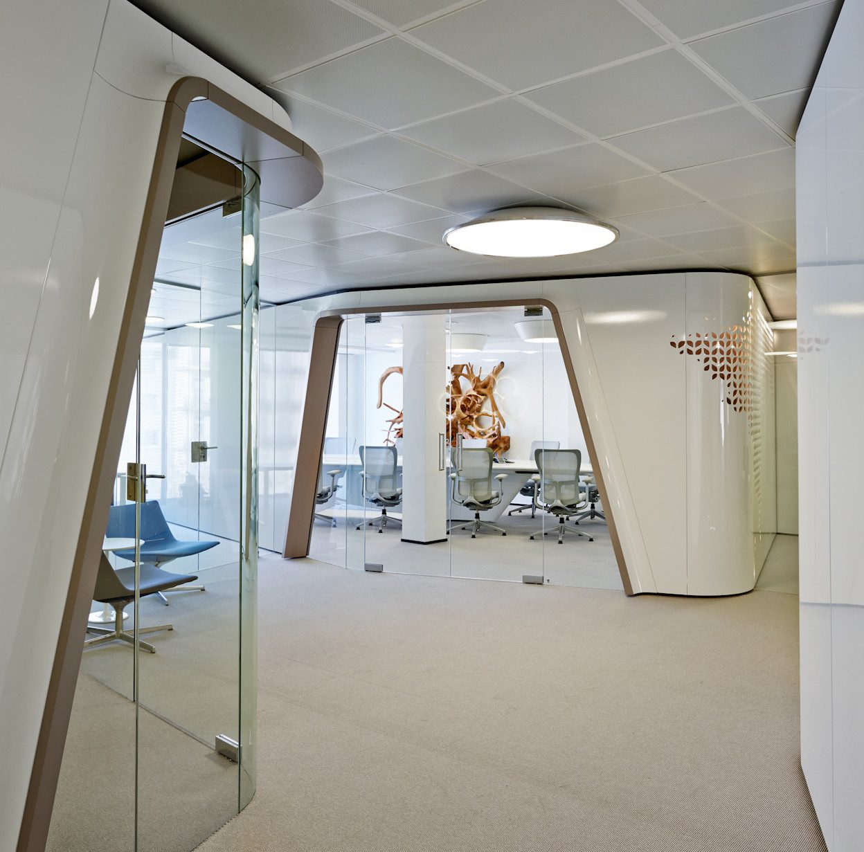 When moving between spaces, the architect wanted the building to tell a story creating a sense of atmosphere. The use of zigzagging and curved elements enabled the transition between spaces to seem continuous. Glass partitions where incorporated to enable the bridging of activity on the two opposing sides creating a sense of interaction between the two. Large windows where introduce on the façade. This offers a picturesque view of the surrounding architecture acting as a potential frame. Within the cladding used, sections where intentionally perforated to reveals a hidden image of West Africa, which commemorated their holding company located within Senegal.