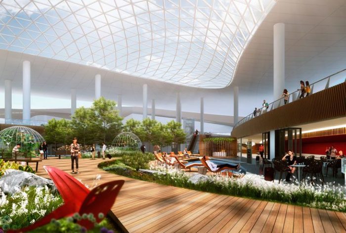 Designed for clarity, ease and comfort, Terminal 2 will incorporate advanced sustainable technologies to create an efficient, healthy and comfortable environment for people. Lush expanses of indoor green space will feature natural daylight, waterfalls, koi ponds, and streams intermingled with luxury lifestyle centers and boutique shopping.
