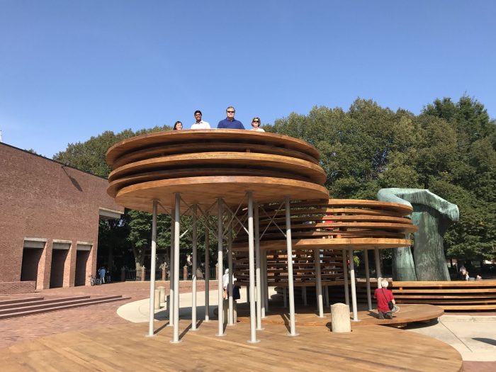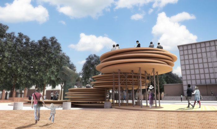 The installation would be made of a hi-tech engineered timber product called CLT, or Cross Laminated Timber. Although softwood CLT already exists in the US, hardwood CLT, native and abundant in Indiana, does not. The proposal aims to jumpstart and accelerate the development and use of hardwood CLT fabricated from parts of logs harvested from Indiana forests that can currently only be used to produce low-value wood products. It seeks to demonstrate the viability and the benefits of a new, high-value timber market in Indiana.