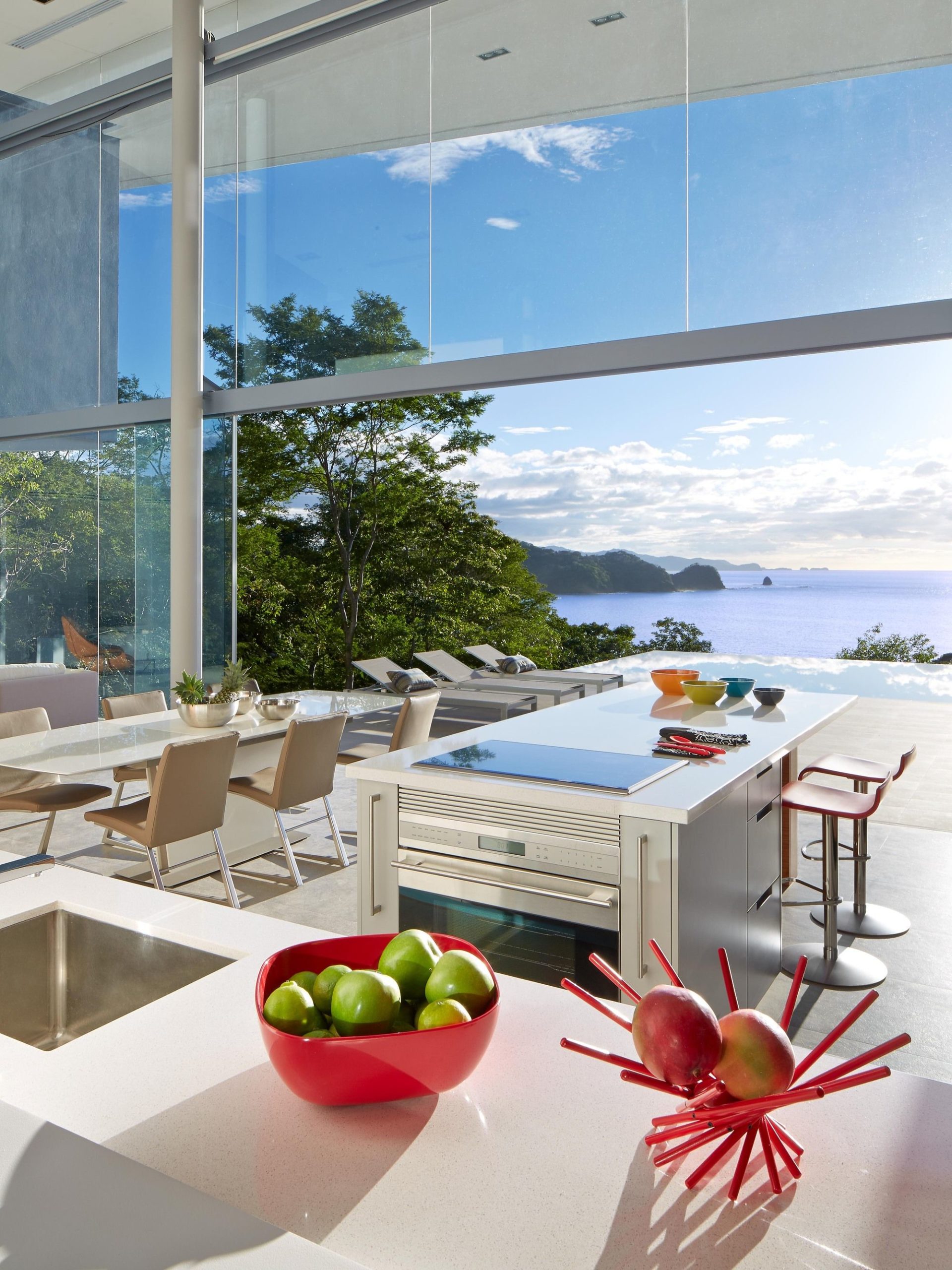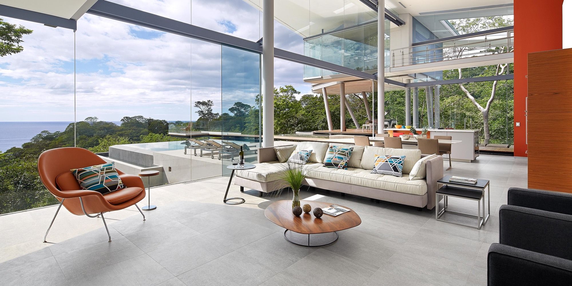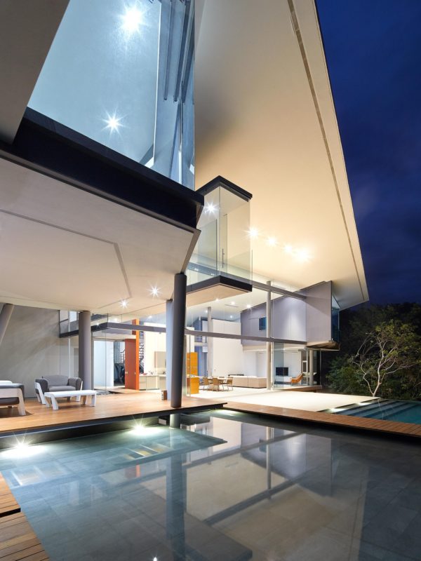 A house is designed to enjoy outdoor living and the views. Because of this, it is designed to be comfortable without the (optional) use of air conditioning. The internal spaces are integrated with the exteriors, which makes being in the interior feels like being outside.