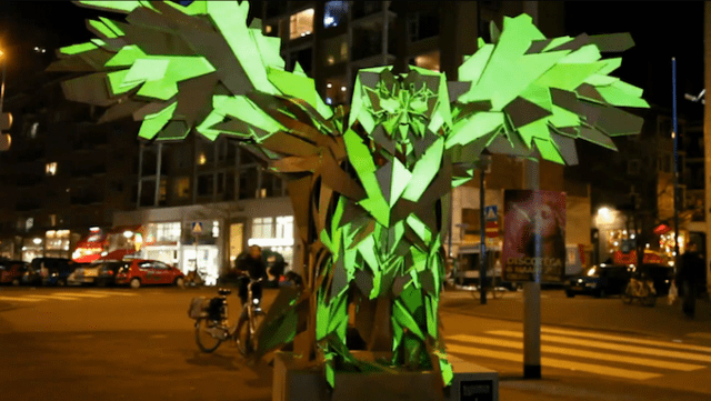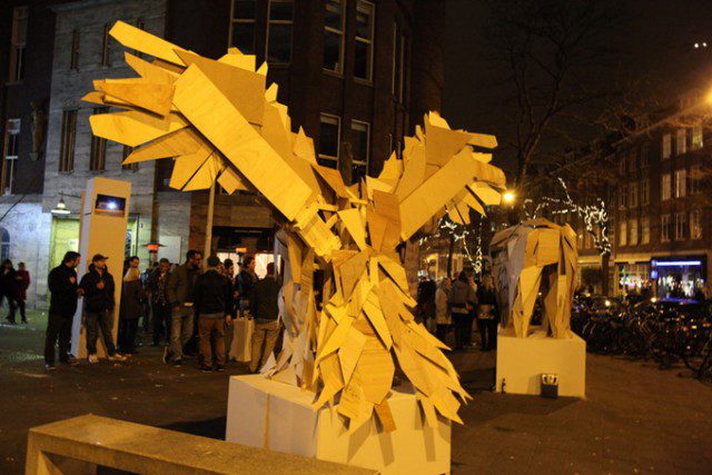 During an outdoor exhibit at Rotterdamse Museumnacht in 2011, visitors could control the projected visuals by tilting a motion sensor and selecting different lighting options. The transforming light patterns kept audiences entertained with the feeling that the creatures were alive and moving.