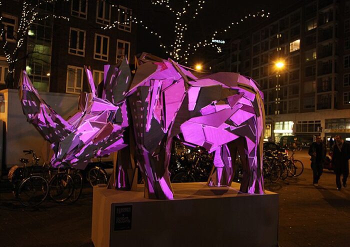 During an outdoor exhibit at Rotterdamse Museumnacht in 2011, visitors could control the projected visuals by tilting a motion sensor and selecting different lighting options. The transforming light patterns kept audiences entertained with the feeling that the creatures were alive and moving.