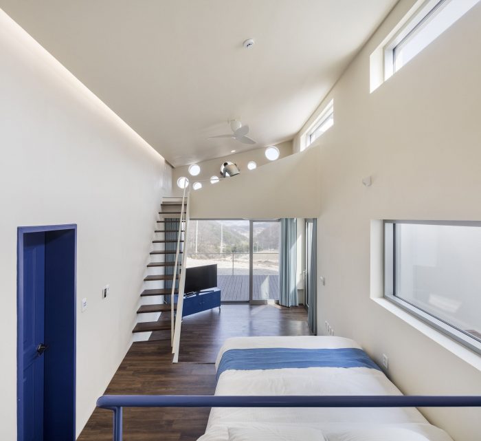 The group of units is unfolded geometrically sliding down the slope. As a result, it provides guests with a totally individual space which has a different view and space independently for each unit. The individual unit functions as a view frame for independent activities open to the outside, and have a private external Jacuzzi space open to the sky in between units. The assemblage of units was delicately designed to create a separate axis without any focal points while mixed into one building.