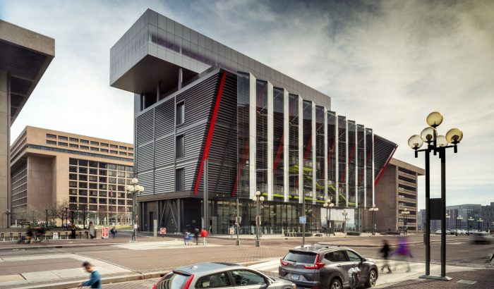 With its large and slender, structural-steel beams extending upward from the site on L’Enfant Plaza in a predominantly concrete area of Washington, D.C., this type of architecturally expressed structural steel is unlike any other in the district. The glass veil on the west facade protrudes from the building like a shining jewel, enticing people up toward it from 10th Street.
