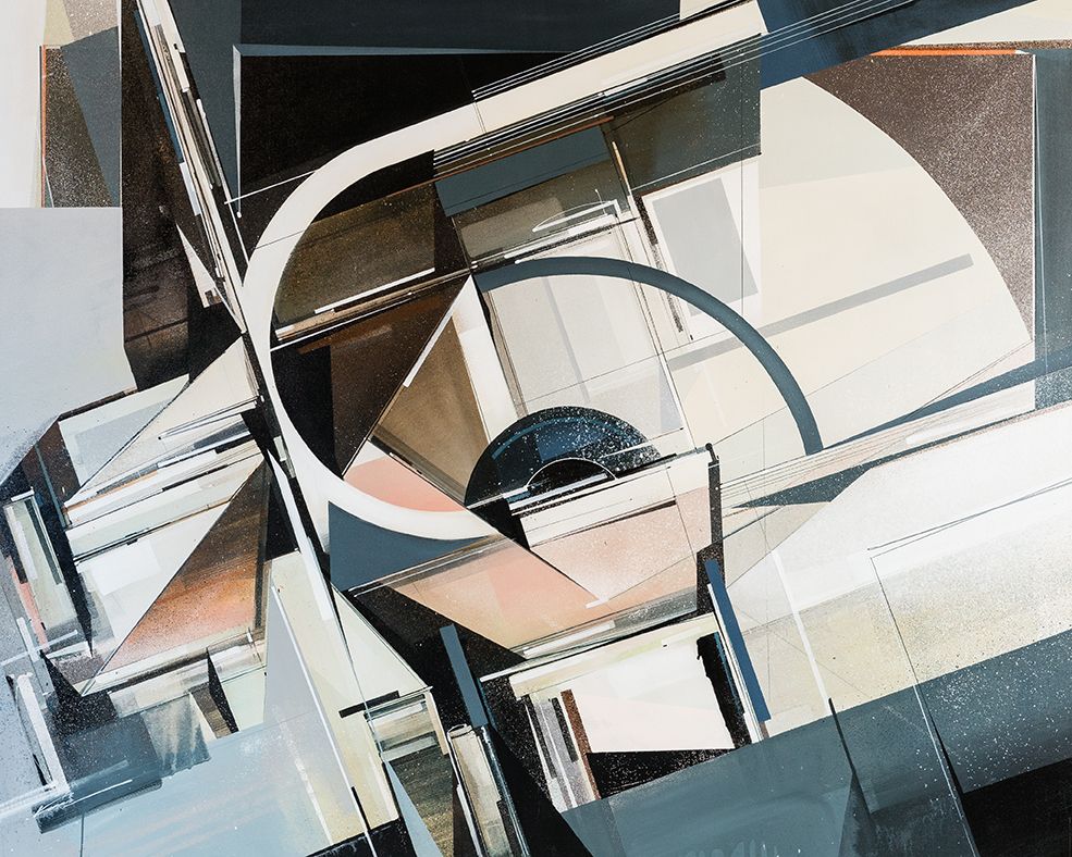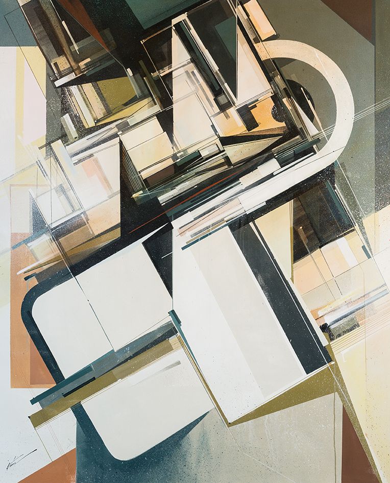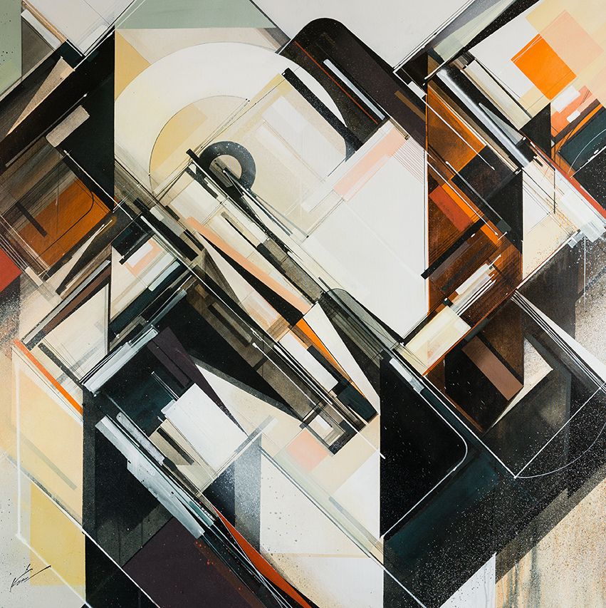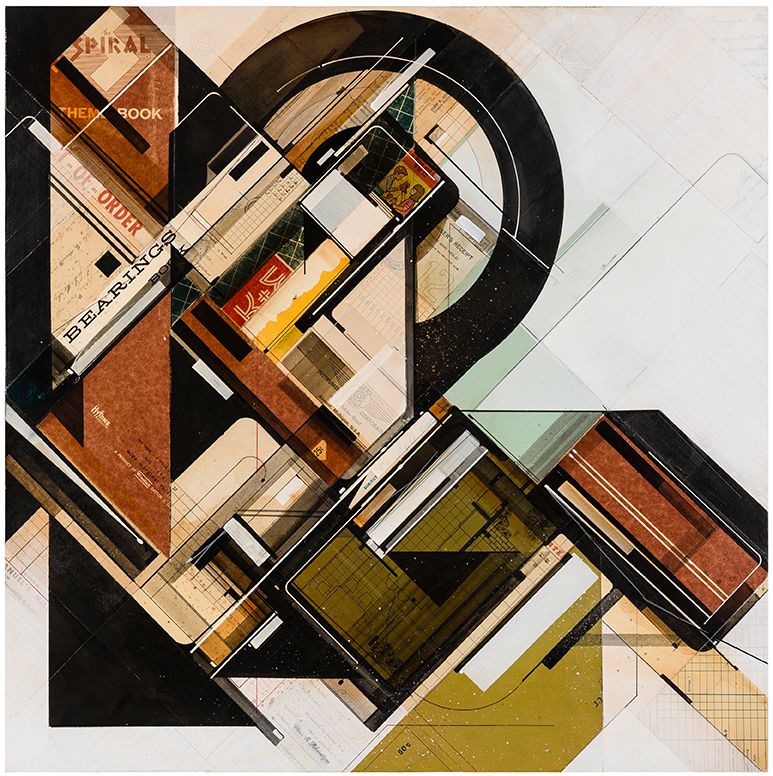 In this work he recycles items from the 1950’s-1980’s inventories, found while scouring the contents of Los Angeles estate sales. To come up with a geometric art work made up of lines and different geometric shapes; neatly put together making it close to a detailed architectural drawing.