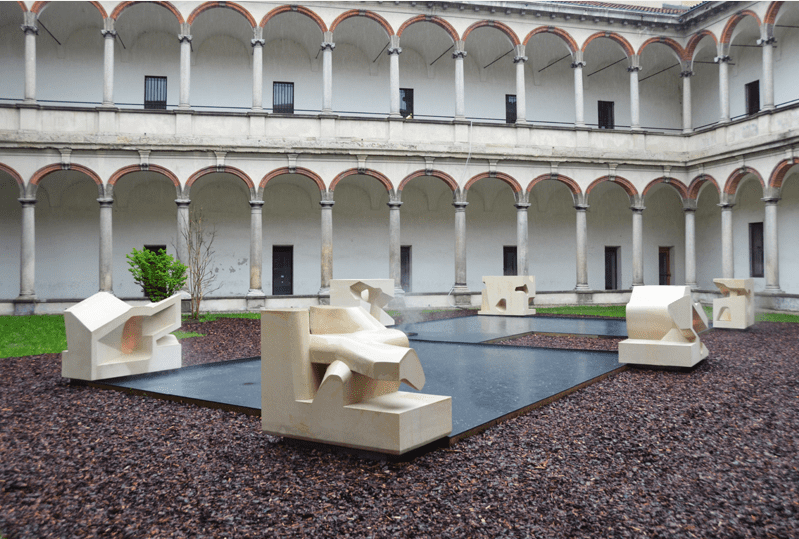 Measuring 1.2 meters in height and each weighing in at 1133 kg, the volumes appear as snapshots in time. Movement has been caught and distilled in solid rock. But then again, maybe that isn’t it. There is a definite sectional quality to the six volumes. Perhaps it isn’t that movement has been caught, but that stasis has been solidified and revealed.