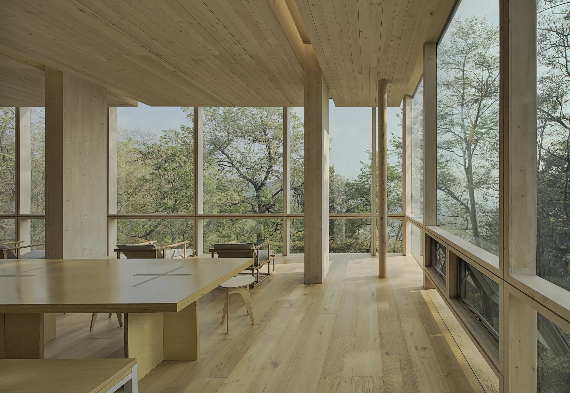 Built with RC pilotis and sandwich panels, the original building of Inwang Guard Post Forest Retreat was a barrack hidden in the valley. We tore down the structure above the pilotis and designed a new facility for the people. Our purpose was to change the symbol of restriction and enmity into a symbol of connection in this new era of openness, creating another paradox. The new facility now functions as a shelter for hikers and a culture complex for culture groups nearby. Used as a shelter, library, and hall, the new facility creates harmony with the natural environment and people.