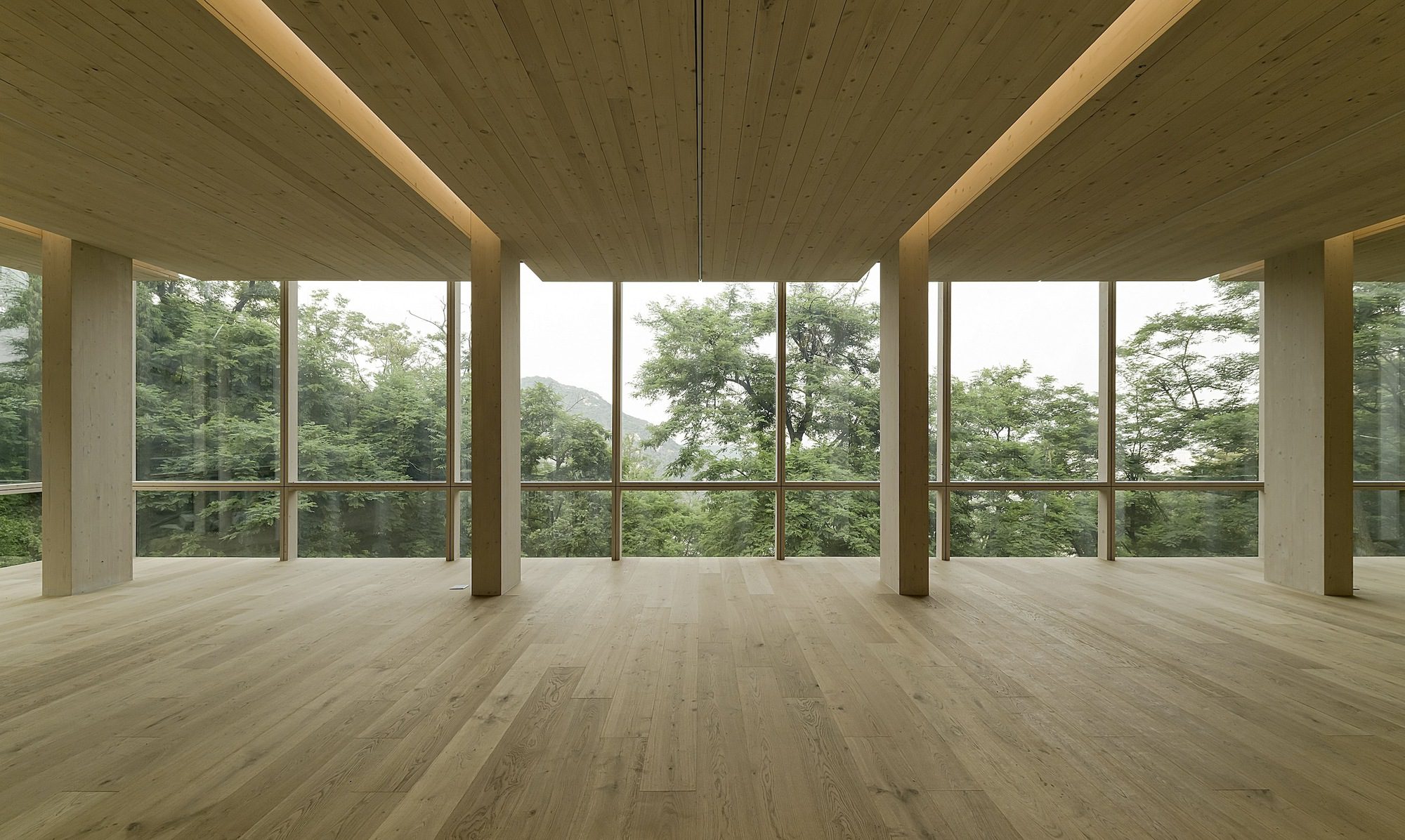 Paradox, Tectonic scene. Timber architecture begins by assembling elements into a three-dimensional matrix. Gottfried Semper defined this type of method as the tectonic method. Variously sized elements form the structure with conjunction and combination. In traditional Korean architecture, wooden architecture is basically designed with columns and beams assisted by rafters, which compose the detailed structure. The Inwang Guard Post Forest Retreat breaks this principle of wooden architecture.