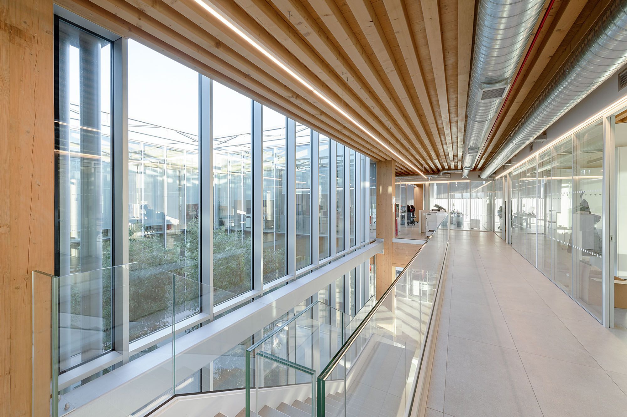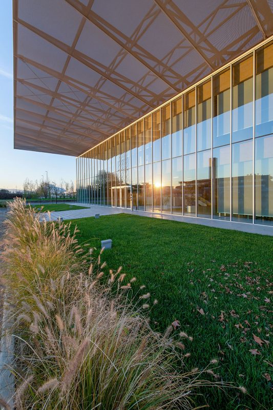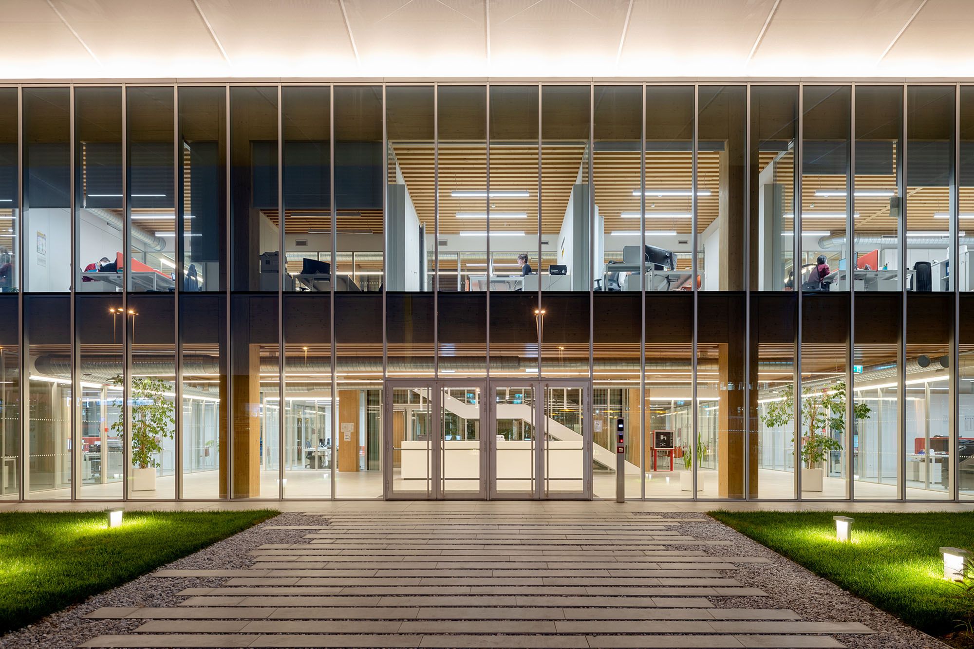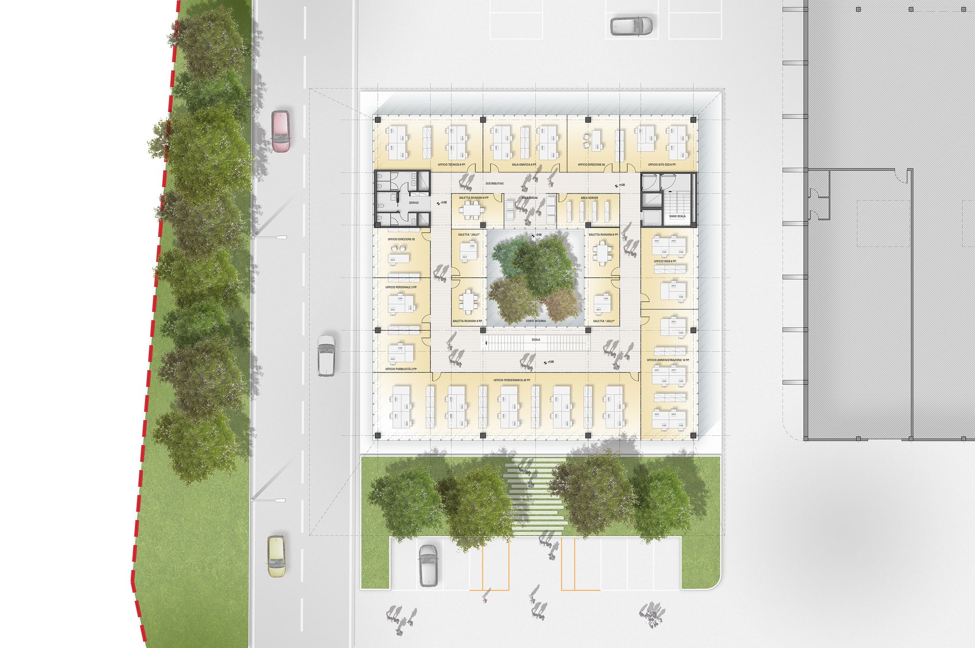 The project has paid considerable attention to the comfort of the interior environments, to the consequent well-being of the staff, and to the permeability of natural light; in this regard, the new building foresees a completely glazed external infill, thus ensuring great transparency towards the outside and facing an internal courtyard enriched with tree and shrubby essences.
