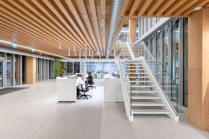 The project of the new office building of Bayker-Iperceramica was born to be a simple and functional envelope, characterized by a strongly contemporary image. The new headquarters will be developed on two levels above ground for a total of approximately 1,700 square meters. The load-bearing structures were designed in prefabricated exposed wood elements (laminated wood pillars, load-bearing partitions, and X-Lam floors), thus ensuring the use of the latest construction technologies in terms of materials, sustainability and prefabrication systems.