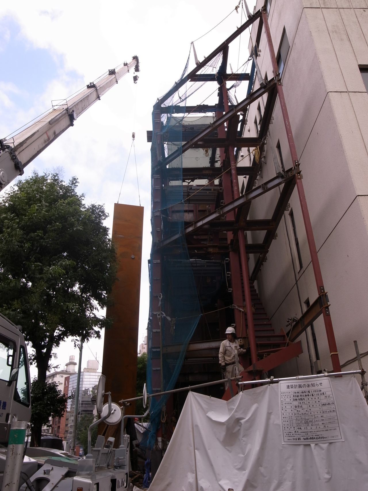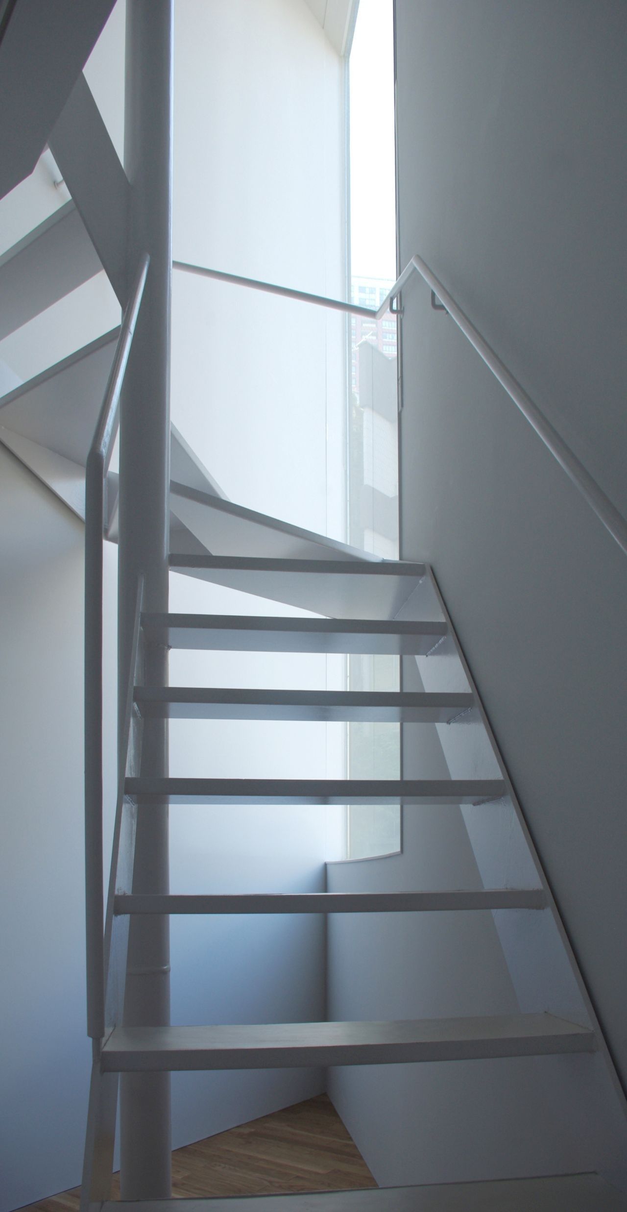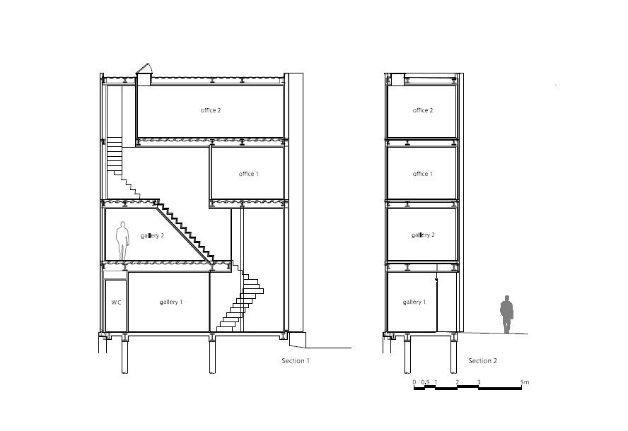 So from the start, architect, structural designer and contractor had to work together to make a building work. Steel, with its capacity for off-site pre-fabrication, was chosen. The ground and first floor feature galleries with the upper two containing offices, notedly, those for an antique arts dealer. This superstructure was welded directly to a foundation of steel pipe piles.