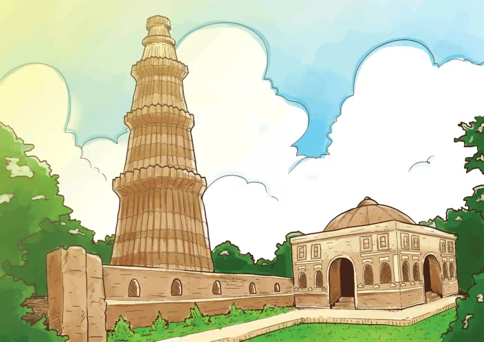 In 1199, a tower of glory rising to 73 meters in height named Qutub Minar was constructed to celebrate Islamic dominance in India after the defeat of Delhi’s last Hindu kingdom. The minar has a height of 72.5 m, a base diameter of 14.3 m, and a top diameter of 2.7 m.