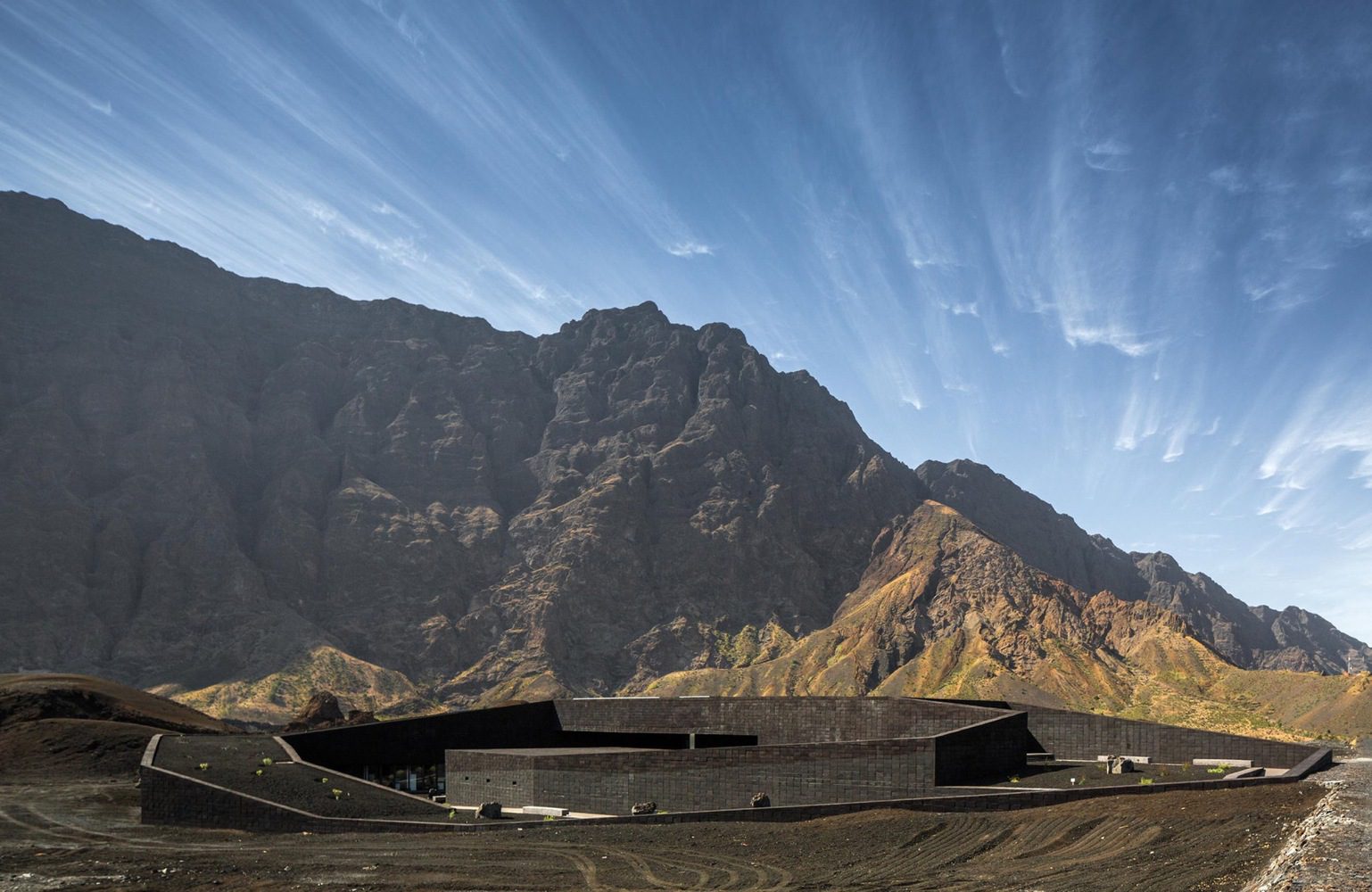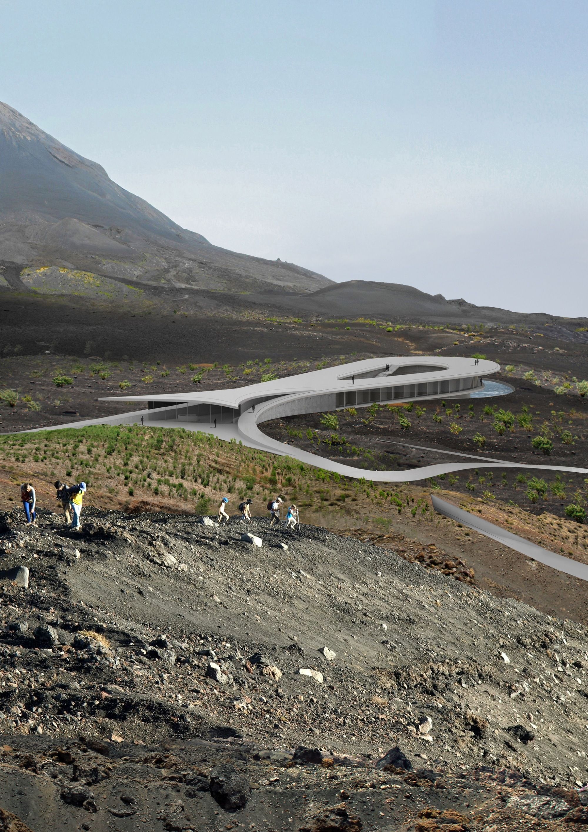 In November 2014, a volcano on Fogo Island, Cape Verde, erupted, spewing forth massive amounts of lava and destroying the homes of hundreds of people from the nearby village of Chã das Caldeiras, After analysing the topic, it turned out that this building served as the Cultural and Administration Centre of the National Park of the Fogo island in Cape Verde and is located inside an active volcano. Curiously enough, the designers have discovered there a local community of more than 1,000 people, who illegally inhabited and tilled the ground in the nationally protected areas.