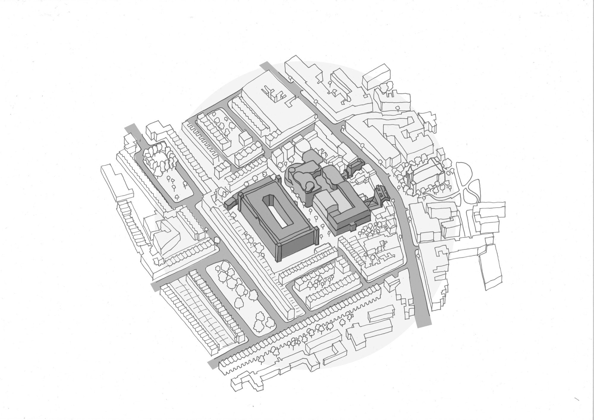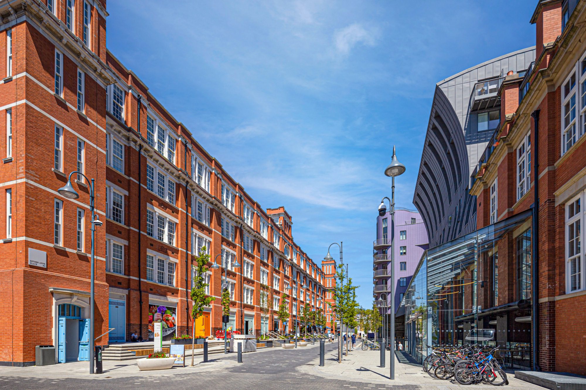 Islington Square , The former North London Postal sorting offices were housed in three large Edwardian red brick buildings mostly hidden from view behind the surrounding Georgian streets and squares. The Grade II listed Post Office fronting Upper Street becomes one of two main pedestrian entrance routes through to a grand central tree-lined boulevard at the core of the development from which many of the commercial functions and residential upper parts are reached.