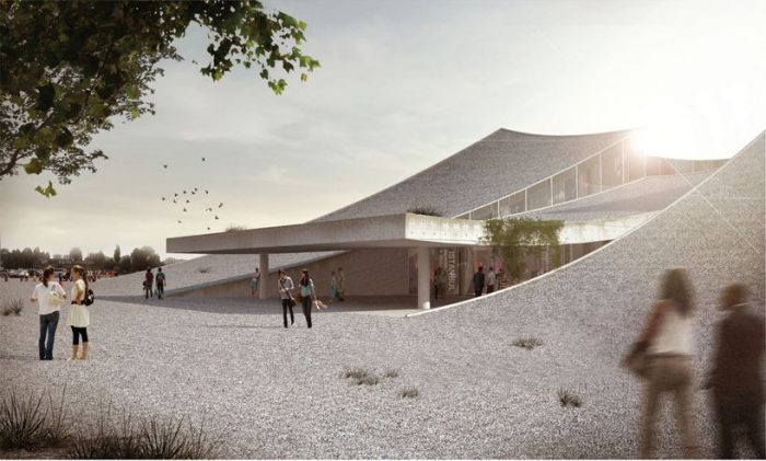 Riccardo Mariano designed the ‘Istanbul Disaster Prevention + Education Centre’ as a reflection of earth-related phenomena. The surrounding site lifts to form a volcano-like structure. From the inside, coloful lights pour upwards, a reflection of man-made energy. Although the nearby landscape contains a creek while the north has civil infrastructure, the building is located on a flat topographical surface allowing the low profile center to visually emerge.
