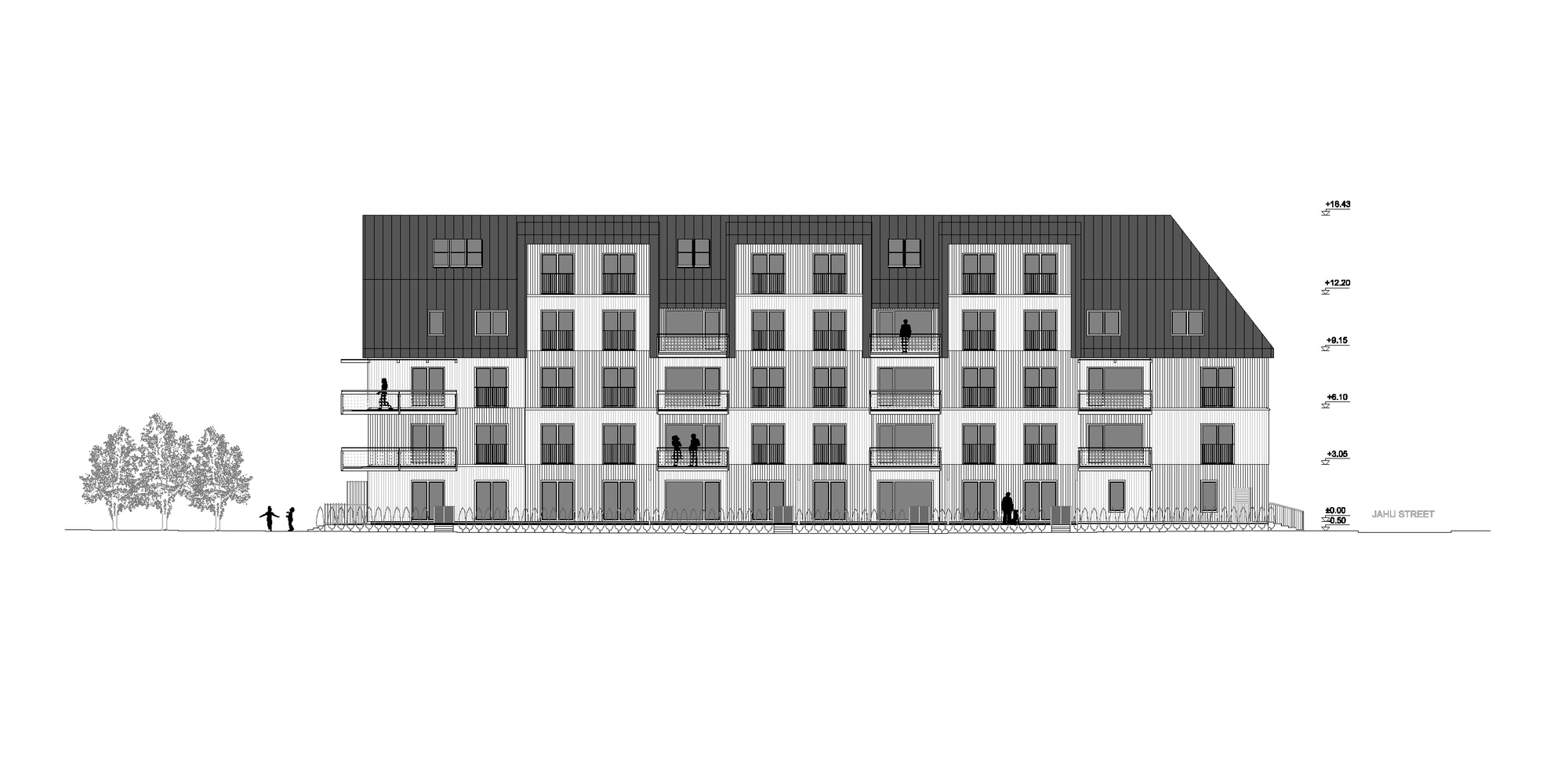 The Jahu apartment building is located in Kalamaja, in a melting point of different eras. The building is situated right between two areas, one with well preserved historical wooden houses and the other with contemporary architecture.