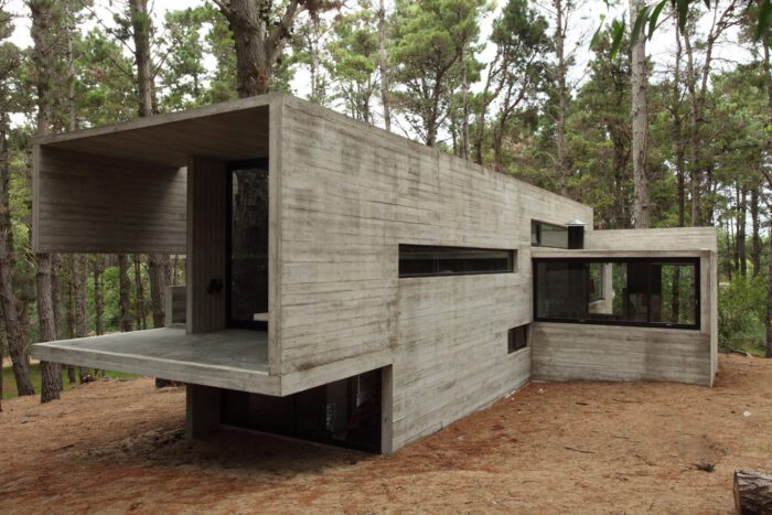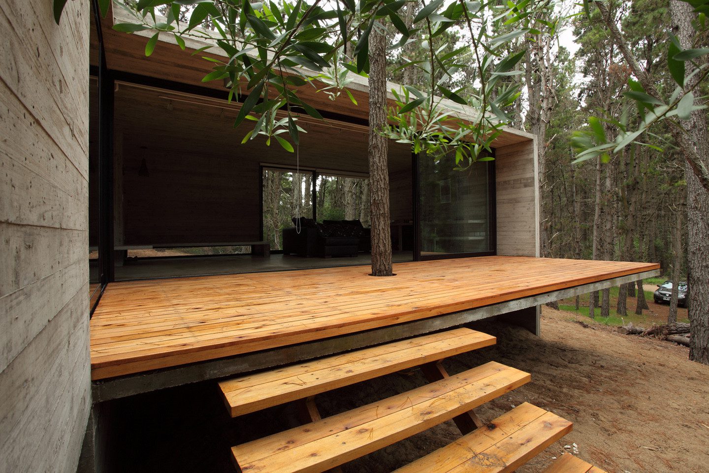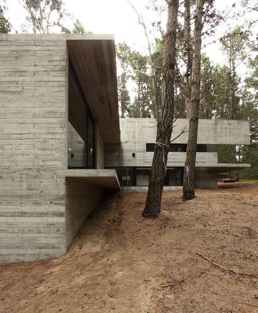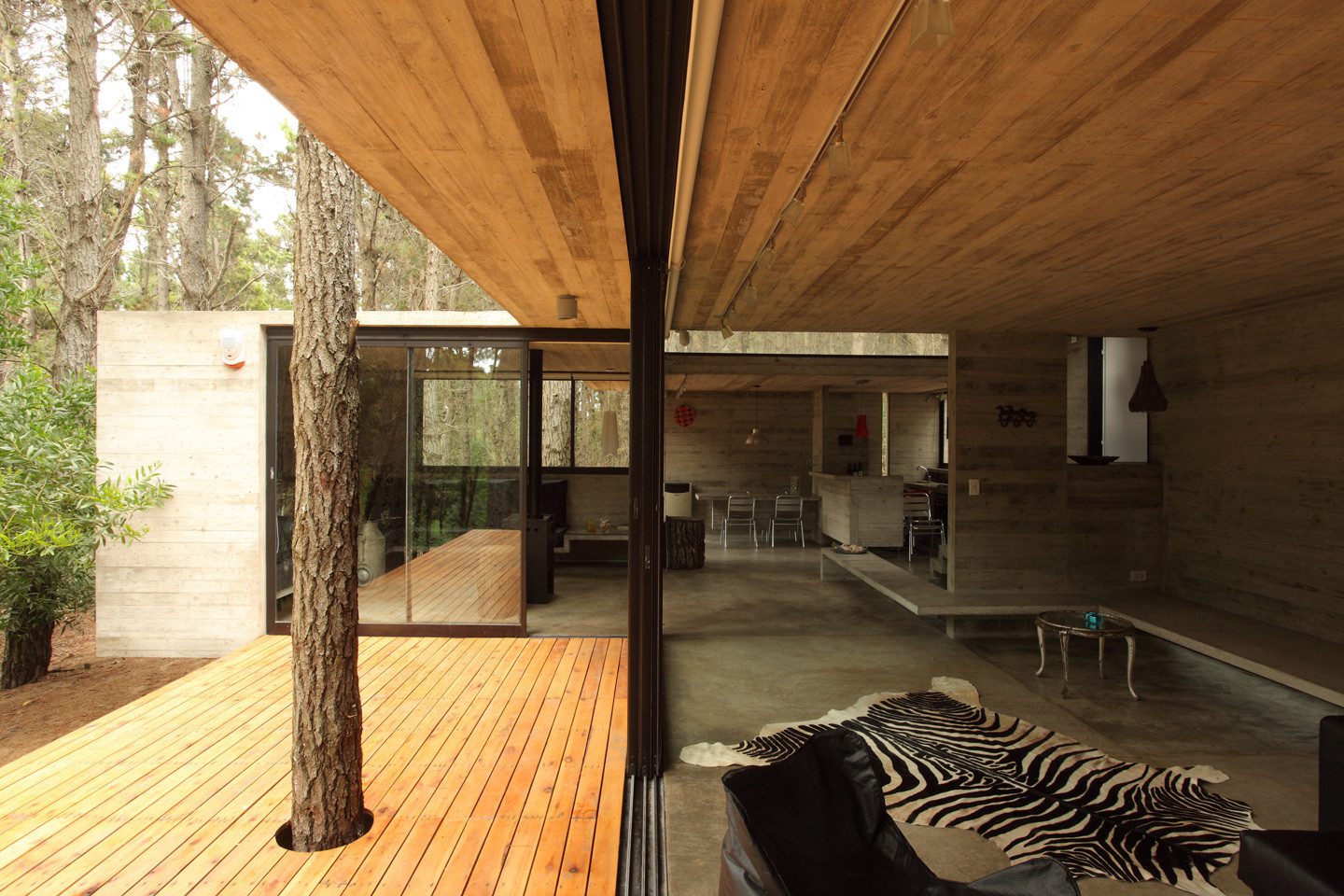 Designed by BAK Architects, The 20m x 30m plot of land in the coastal Mar Azul forest in Buenos Aires, Argentina is the site for BAK Architects’ JD House, a residence designed in concrete, wood, and glass and blended into the topography and vegetation on the site. The preliminary specifications for the house required two bedrooms, two bathrooms, and a large, flexible social area, integrated into the kitchen, that could accommodate different activities for the guests that are expected to visit. The client also specified that generous outdoor expansions were available on the site.