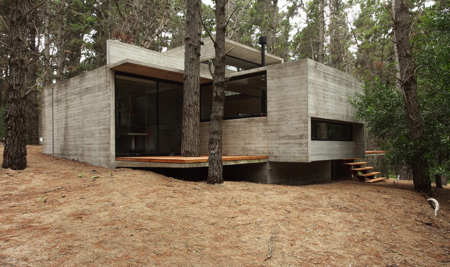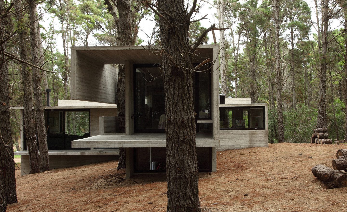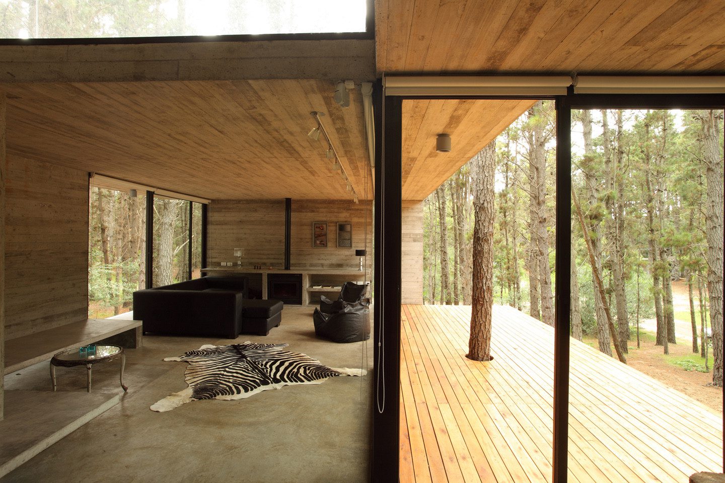 Designed by BAK Architects, The 20m x 30m plot of land in the coastal Mar Azul forest in Buenos Aires, Argentina is the site for BAK Architects’ JD House, a residence designed in concrete, wood, and glass and blended into the topography and vegetation on the site. The preliminary specifications for the house required two bedrooms, two bathrooms, and a large, flexible social area, integrated into the kitchen, that could accommodate different activities for the guests that are expected to visit. The client also specified that generous outdoor expansions were available on the site.