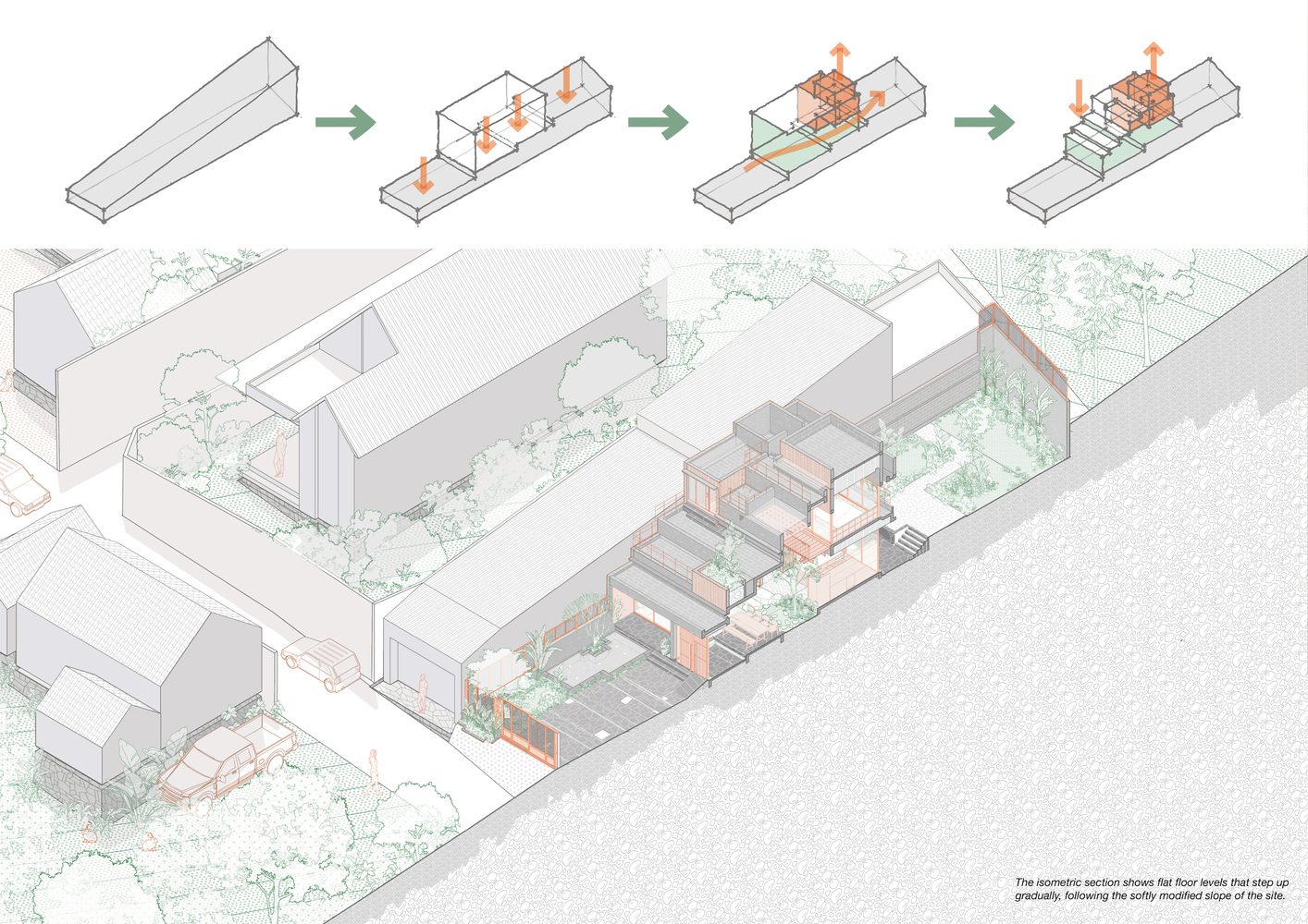 Contrary to the common trend of high-density housing in the area, the design team adopted a “just enough” approach, focusing on essential needs and spatial balance. In designing this house, the team’s solutions were based on the site’s topography and the family’s everyday lifestyle.