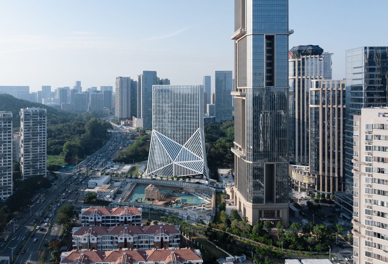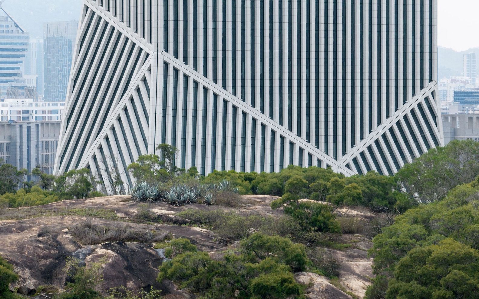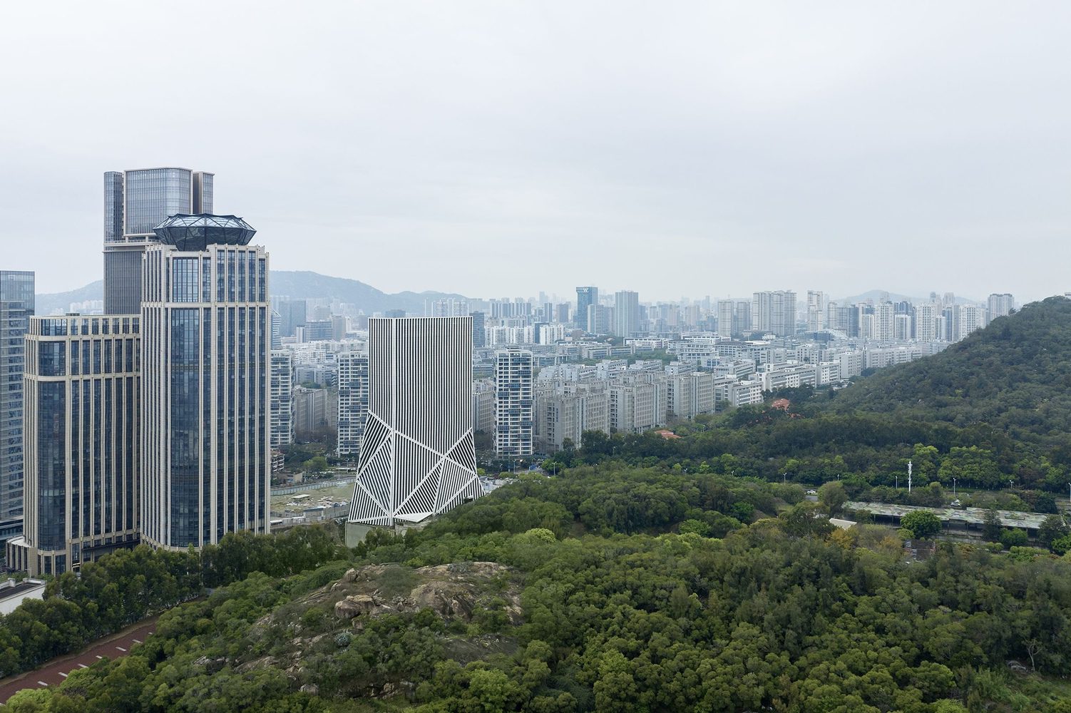 JOMOO Headquarters is the first office campus for China’s largest sanitaryware company. Located in Xiamen’s central business district, the building stands between dense high-rises on one side and forested hills on the other, encapsulating the coexistence of nature and urbanization that defines the island city’s landscape.