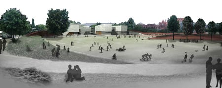Tenerife-based architectural practice Menis Architectos have designed the newly executed Jordanék Music Hall in Torún, Poland. The studio won the contest organized by the local municipality, which wanted a construction, fitting well into the natural and cultural landscape. The project was commissioned as a part of the refurbishment of the UNESCO protected historical town in its competition for The European Capital of Culture 2016.