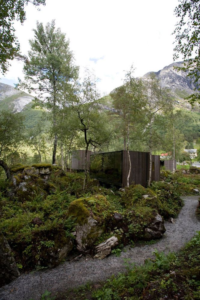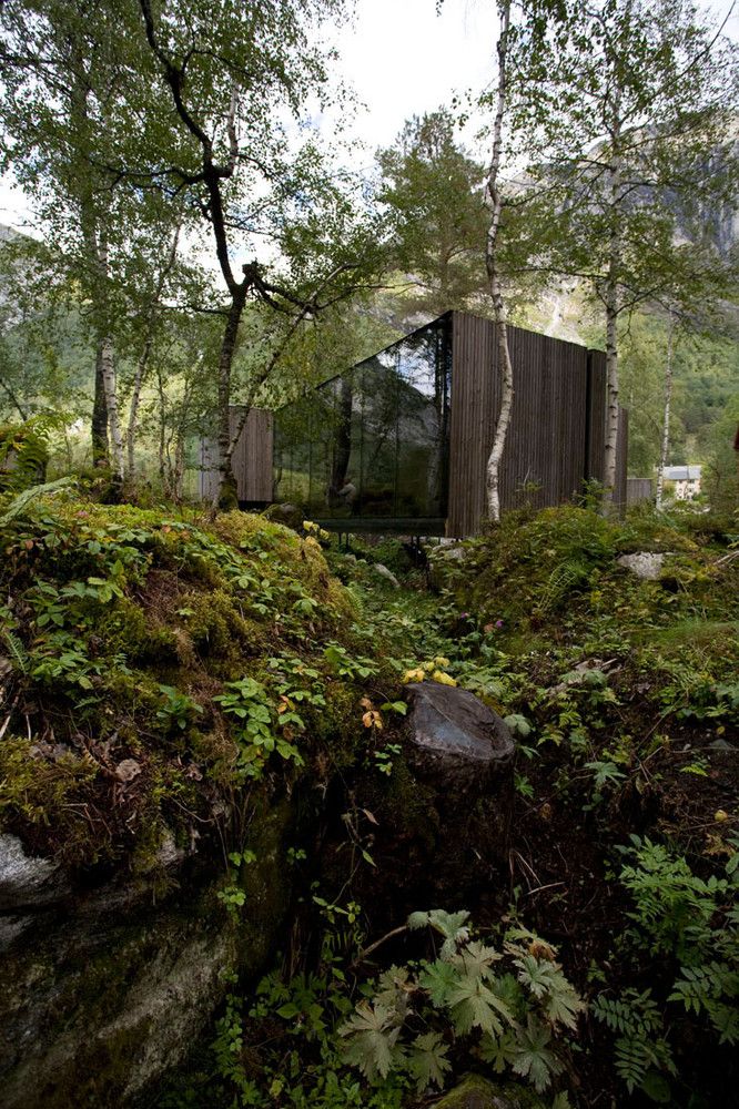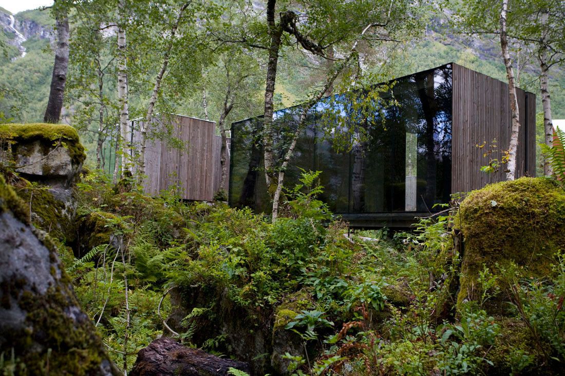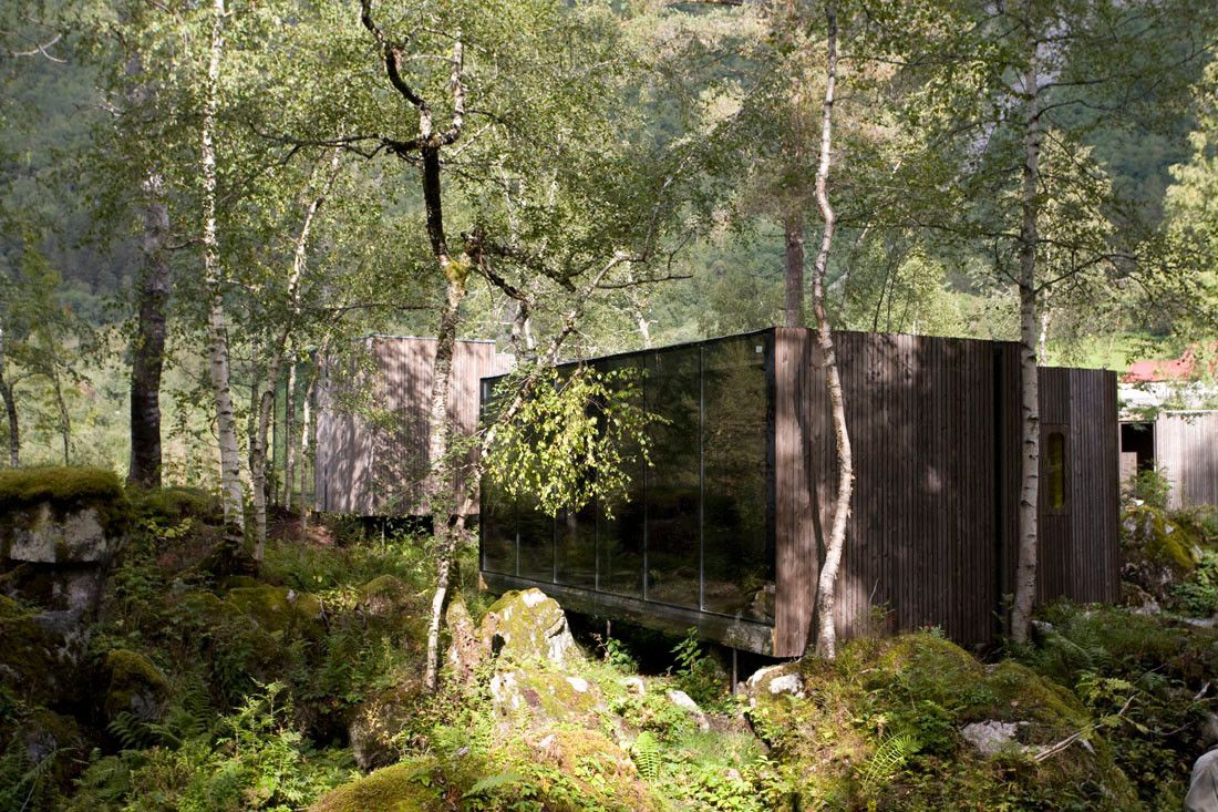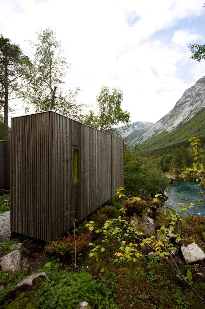 Juvet Landscape Hotel designed by Jensen & Skodvin Architects, One of the local residents at Gudbrandsjuvet, Knut Slinning, is building a Juvet Landscape Hotel. The idea emerged at another site, Aurland, but was not realized there.