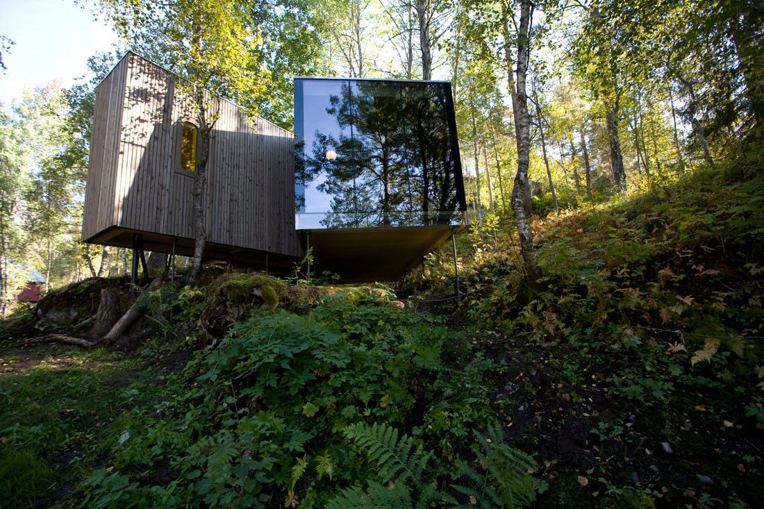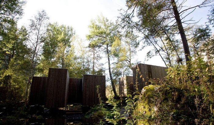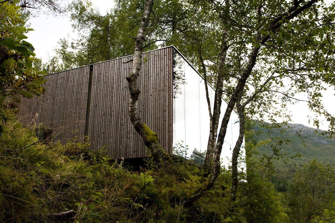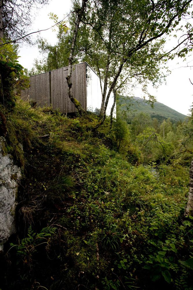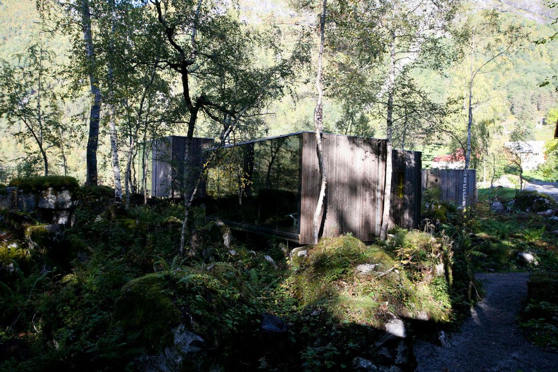 Juvet Landscape Hotel designed by Jensen & Skodvin Architects, One of the local residents at Gudbrandsjuvet, Knut Slinning, is building a Juvet Landscape Hotel. The idea emerged at another site, Aurland, but was not realized there.