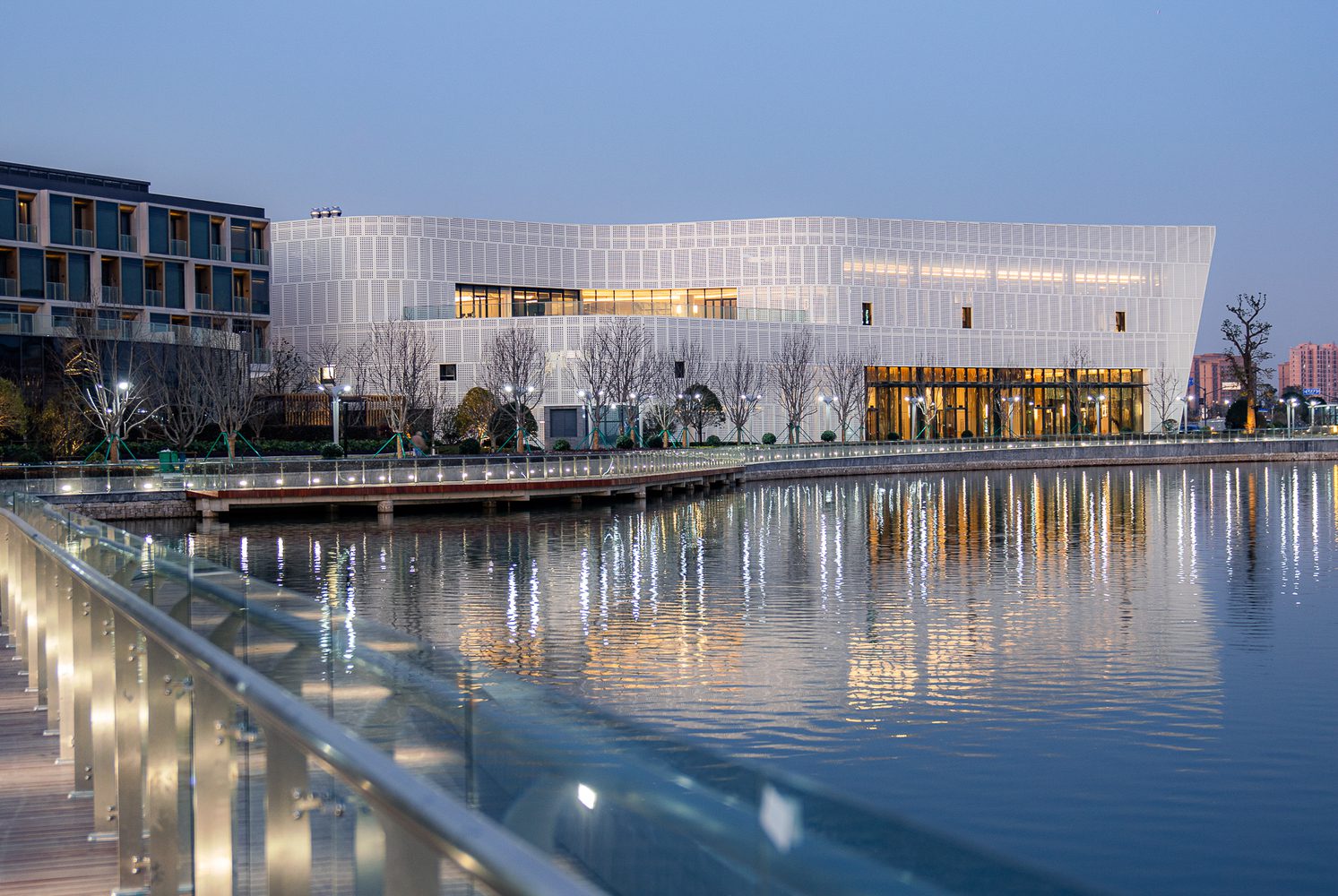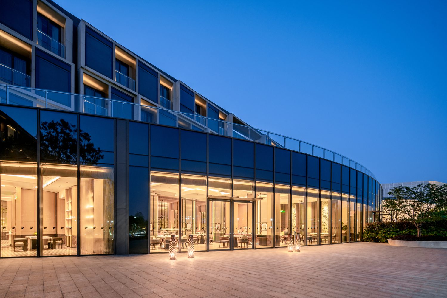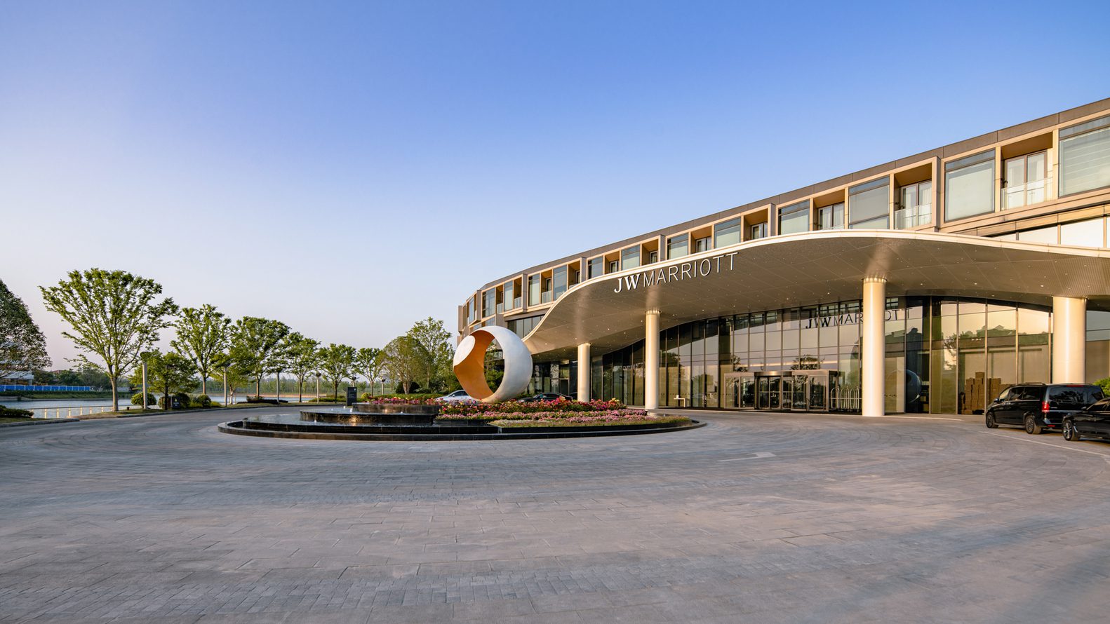 Designed by Gensler, JW Marriott Hotel Shanghai Fengxian, the 50th Marriott International hotel in Shanghai, opens its door today. Positioned in the heart of the Jinhai Lake resort centered around an artificially created lake, JW Marriott Hotel Shanghai Fengxian has 265 guestrooms and suites. The architecture design of this project matches the water and greenery-filled views with a unique building design that emphasizes fluidity, harmony with nature, and design performance that drives user experience.