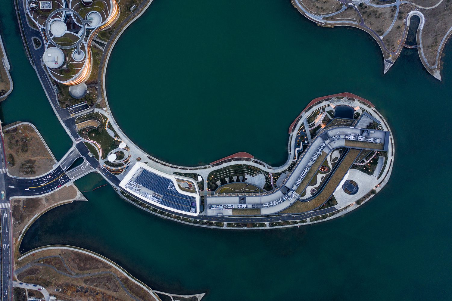 The circulation plan for the project confines automotive traffic to the northern shore of the peninsula while creating space for the pedestrian environment in the south, exposing the guests of the hotel to vast, uninterrupted views of the lake. The convention center, which has busy peak traffic, is planned at the entrance of the site and the hotel lobby is planned in the end to provide a more private guest experience.