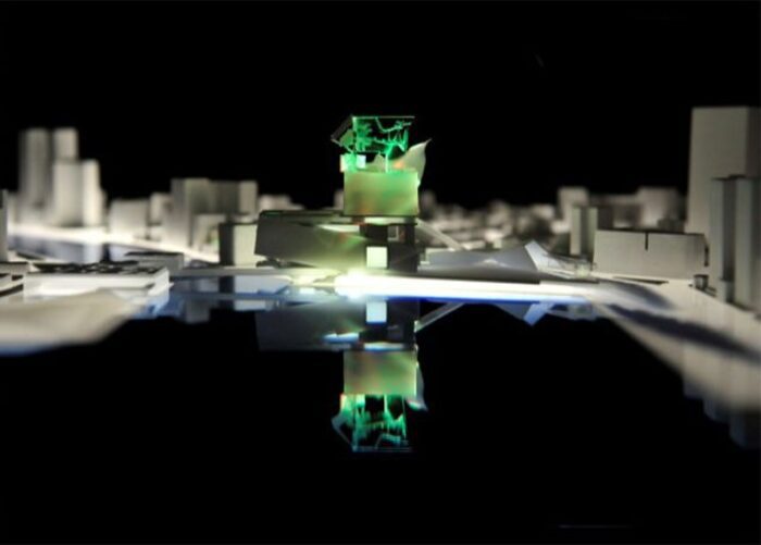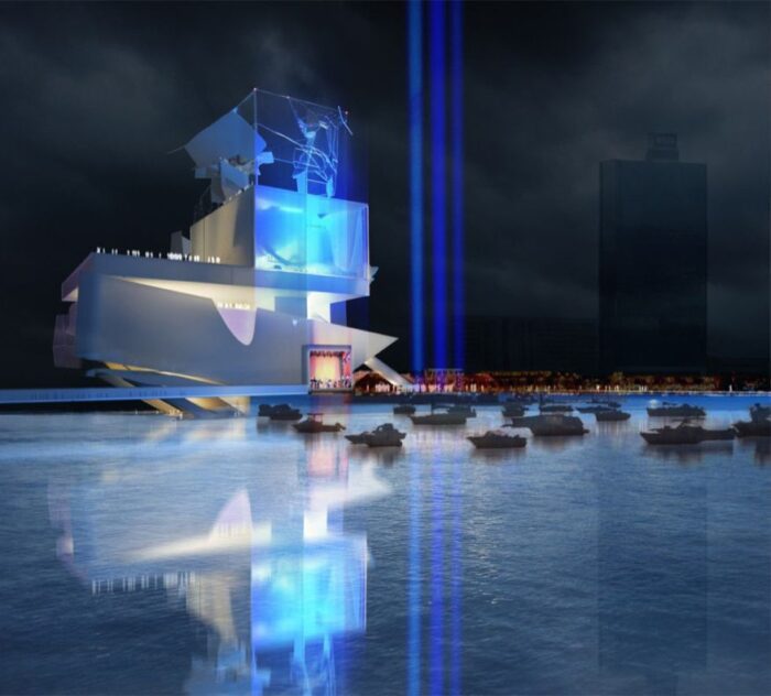 The concept is that of a dynamic, vertical-horizontal public space—a twenty-four-hour attraction. By day the Center is an iconic silhouette against the Kaohsiung sky and by night a luminous showplace, an animated marquee on a grand scale. It is a symbol for the city and a place for all the people—a great symbol of Kaohsiung’s maritime heritage and its music industry future. It is a place where everyone can experience the loftiest position of privilege and the most serene moment of peace and contemplation, a place where the youth of the city and its internationally renowned community of commerce can come together to celebrate, party and relax in the beauty of their home—a place of origins, new and old.