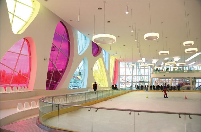 Ice skating ring with an area of 2000 m² consists of two floors which are the ground floor and mezzanine floor. The total construction area is 2600 m². The surrounding lounge accommodates public functions and social activities when not occupied for rink use.