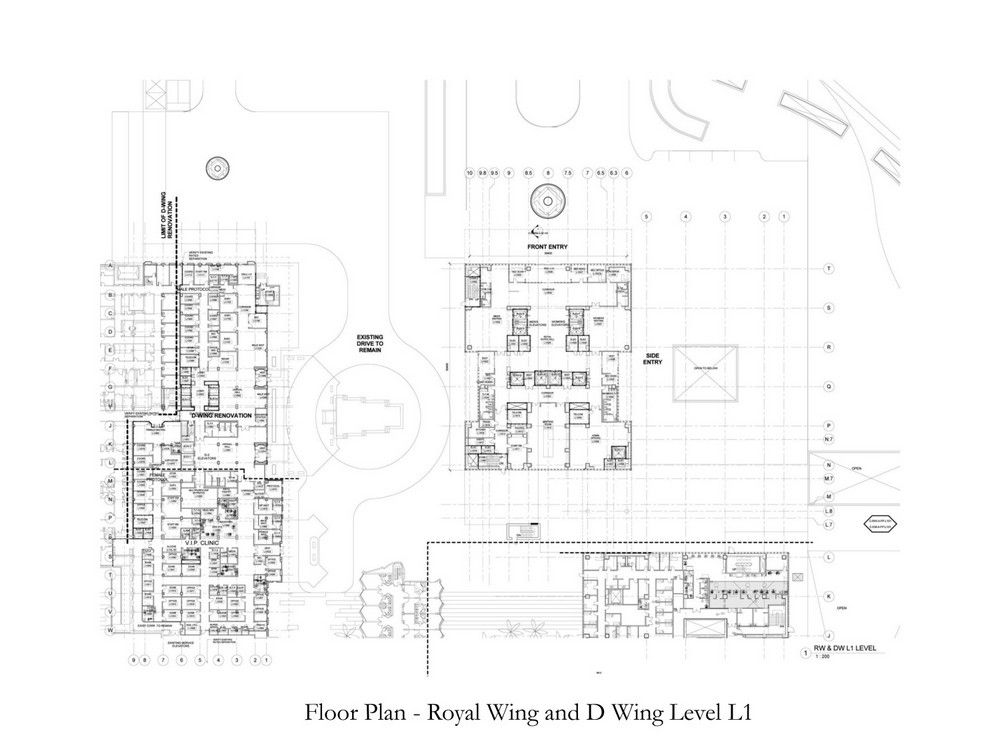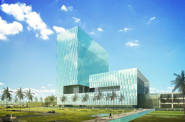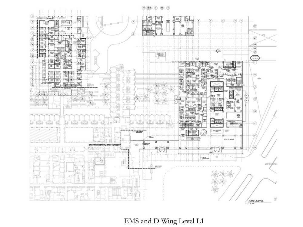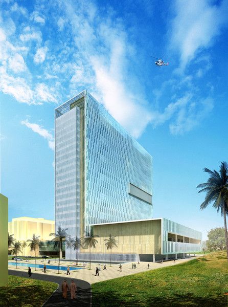 The project includes four signature buildings: The 360-bed King Abdullah Center for Cancer and Liver Disease, the National Biotechnology Center, a Royal Wing, and the EMS Polyclinic Building.