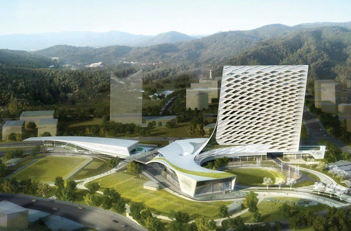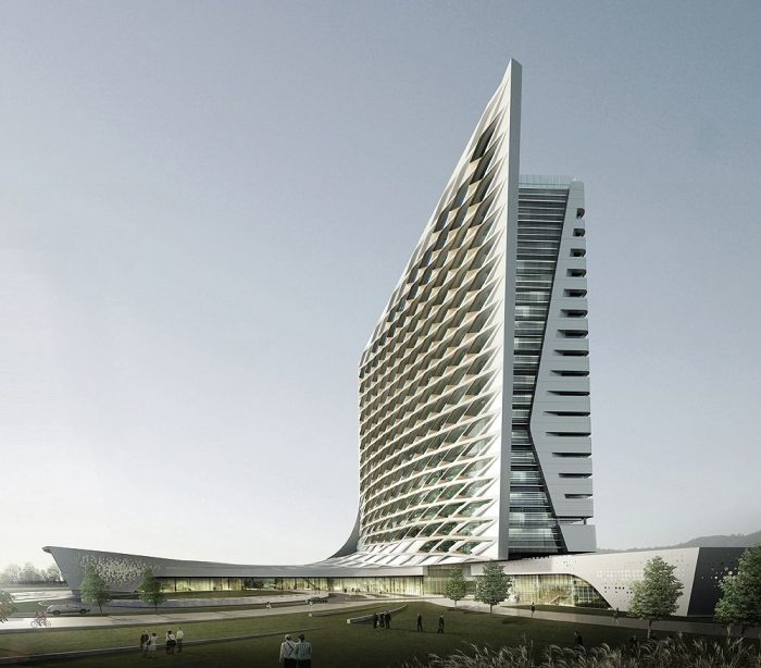 Design of the Korean Land + Housing Corporation for DRDS, a Los Angeles based firm, won the international competition that has been organized early this year between 9 teams competing for a new US320 million corporate headquarters. The project reflects LH’s brand by creating a building that is harmonious both visually and technologically with the surrounding landscape. The project implements numerous sustainable methodologies at both the micro and macro scale. Features include a dramatic brise soleil on the southern façade of the tower and multistory interactive zones on the west that utilize an intelligent skin that draws cool air through the building. More about the design proposal comes from the architect after the break.